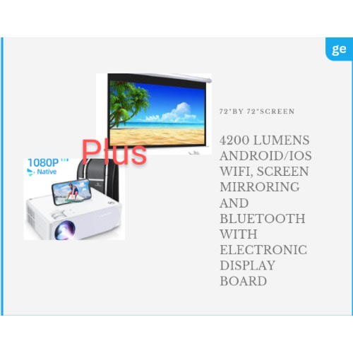 Buy 4200 Lms iOS & Android Screen Mirroring - Bluetooth - Wi-Fi 1080p With Electronic Projector Screen in Nigeria