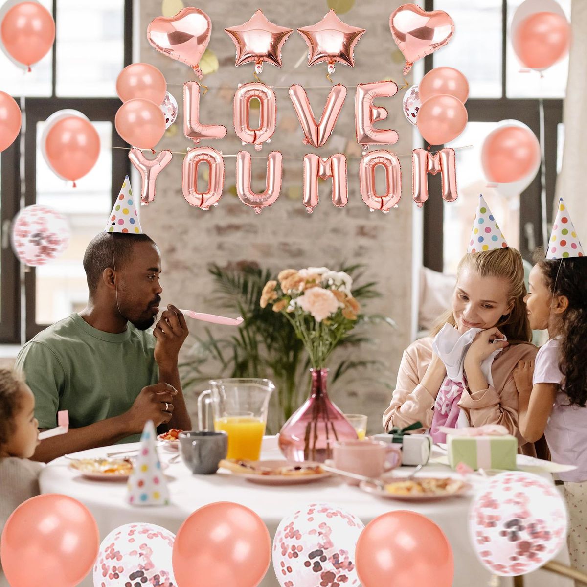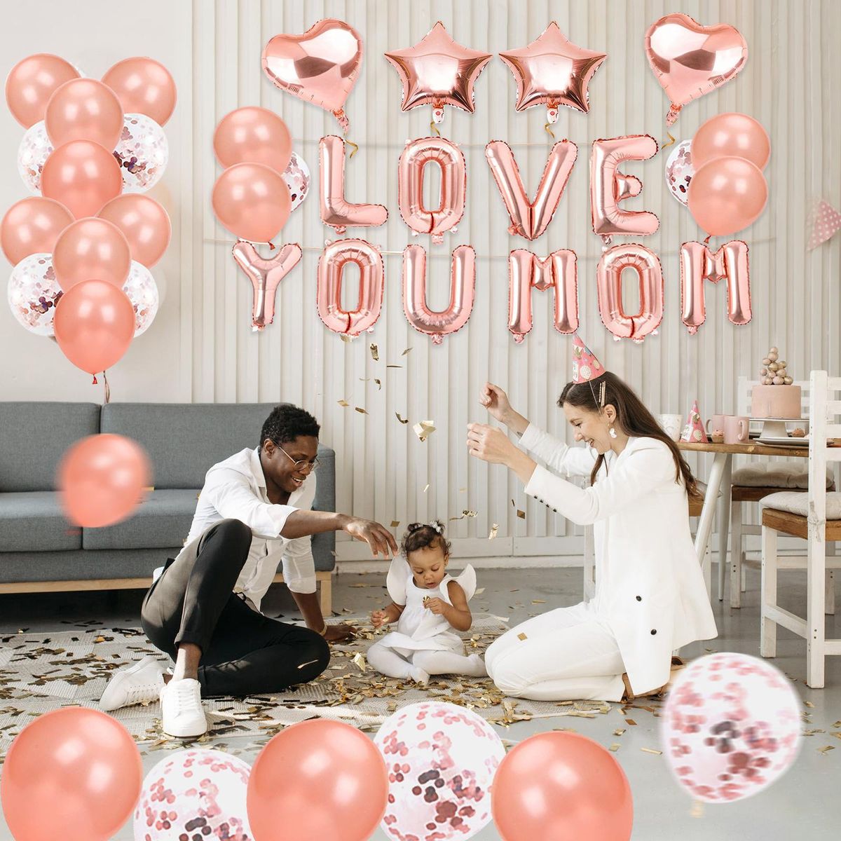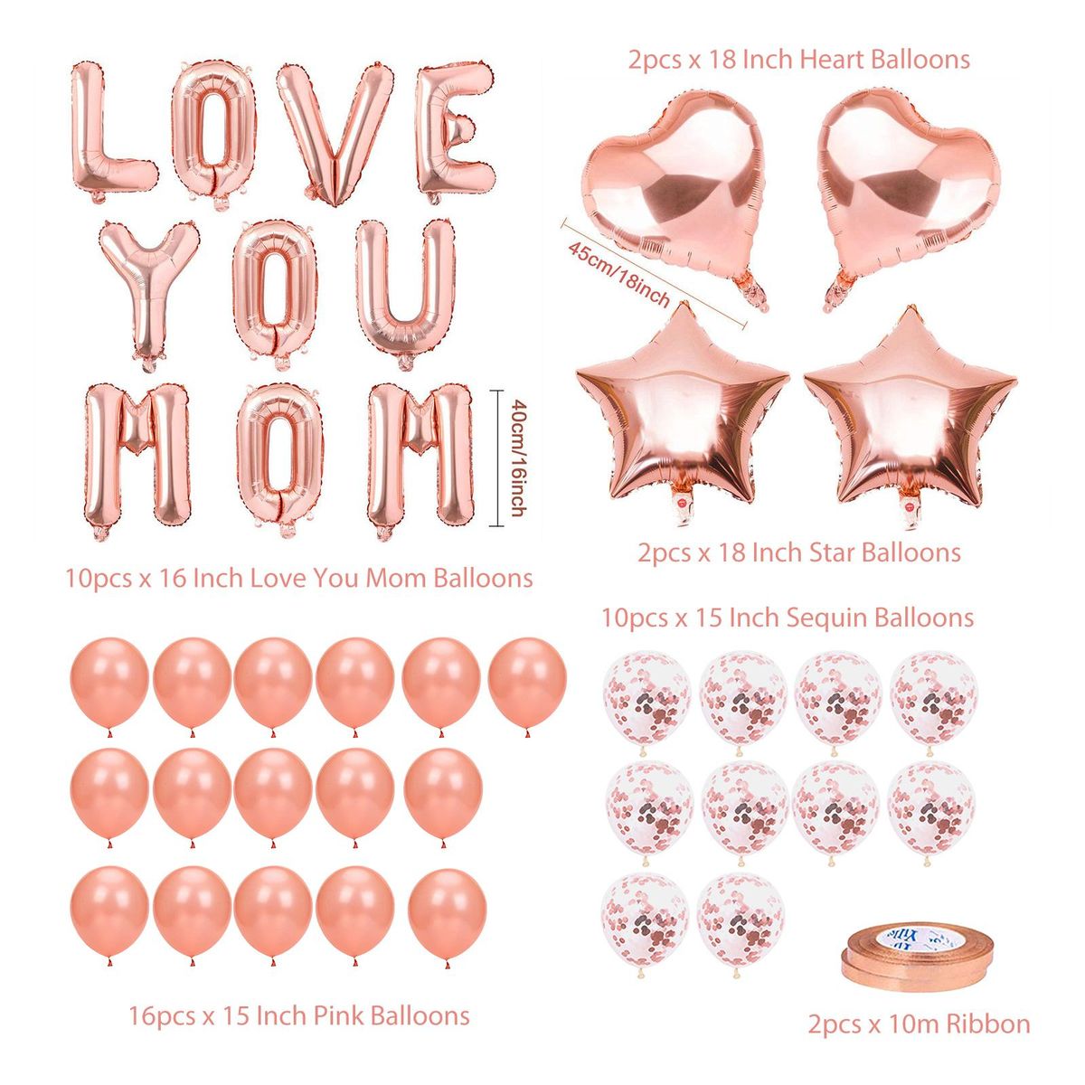 Buy 42PCS Rose Gold Mother's Day Party Decorations Set Love You Mom Party Supplies Sequin Balloons 2 Rolls Ribbon for Festivals Party Decorations in Nigeria