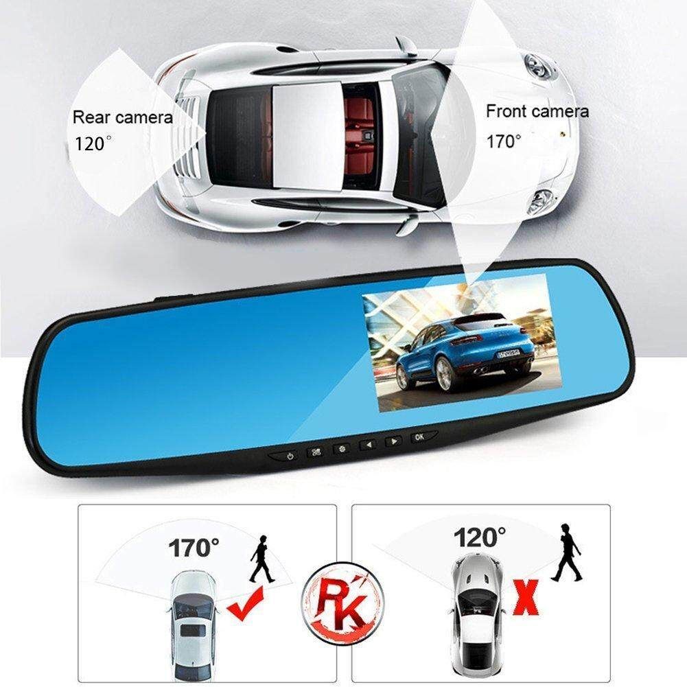 This Car DVR has two cameras that allow for simultaneously recording videos from two different angles. The picture in Picture display will let you have a clear view from front and back-up camera. When the car in Reversing Gear, this car DVR will automatically switch to the back-up camera image view with parking line.