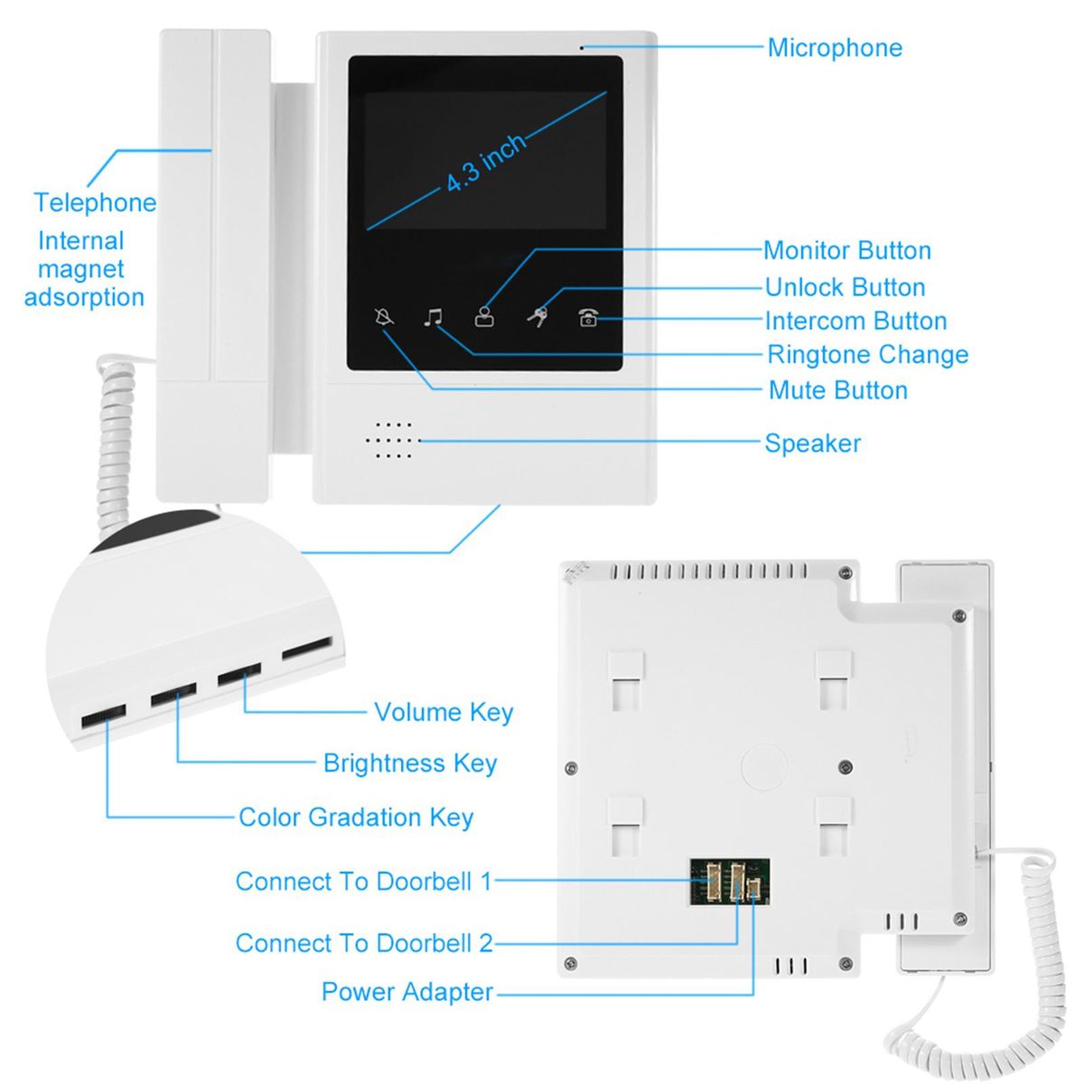 Buy 4.3 inch Wired Video Doorbell with Night Vision Rainproof Function Visual Intercom Two-way Audio Video Door Phone Doorphone Telephone style for Security Camera Home Surveillance in Nigeria
