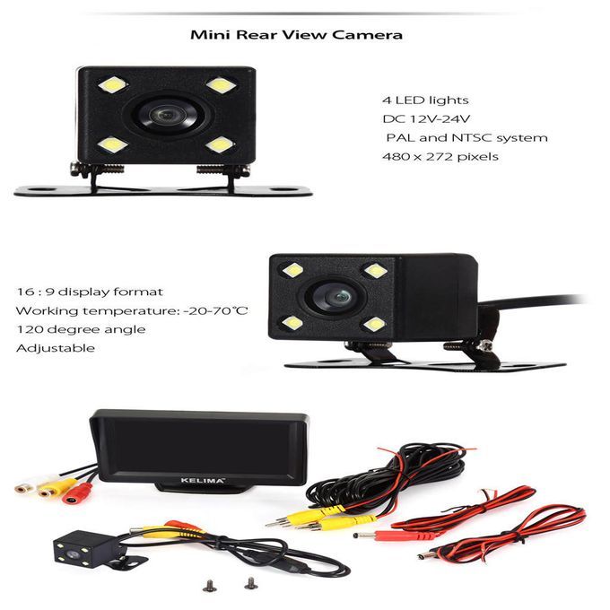 1 x car rear view camera 1 x rear view camera cable 1 x car display 2 x power cord 2 x screw 1 x user manual