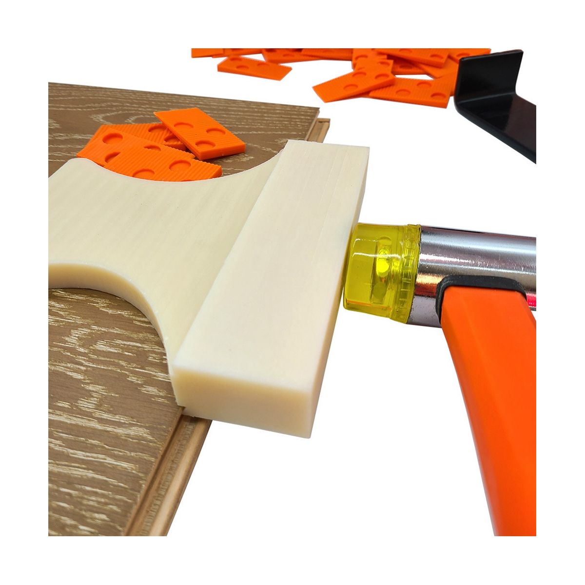 4.40 orange spacers for installation of more area space This is a new wood floor installation tool