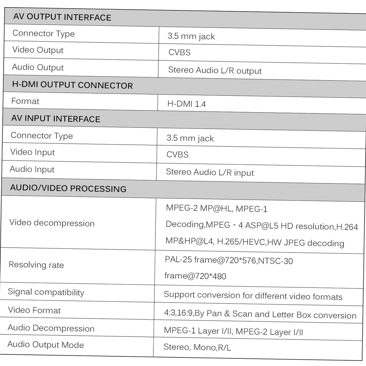 - Supports MPEG2, MPEG4, H.264/MPEG4 AVC, H.265/HEVC hardware decoding.
