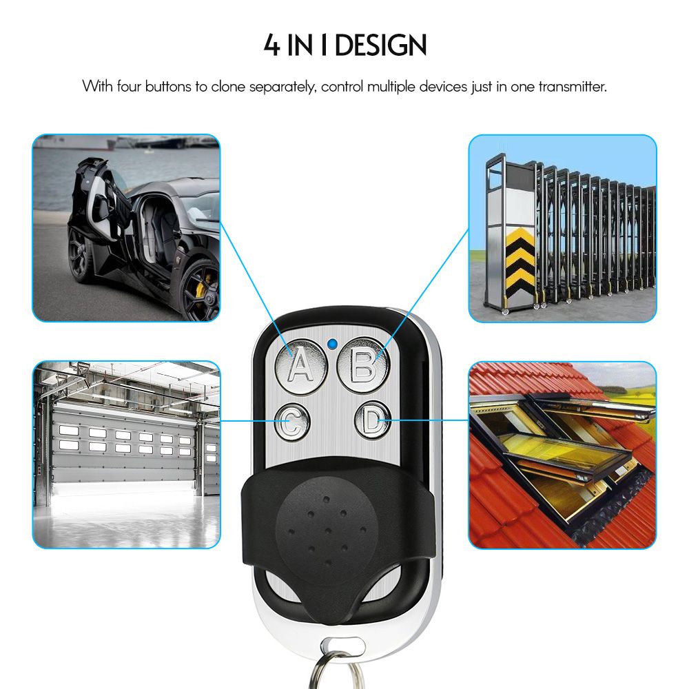 4 in 1 design, with 4 buttons to clone up to 4 remote signals in one transmitter.