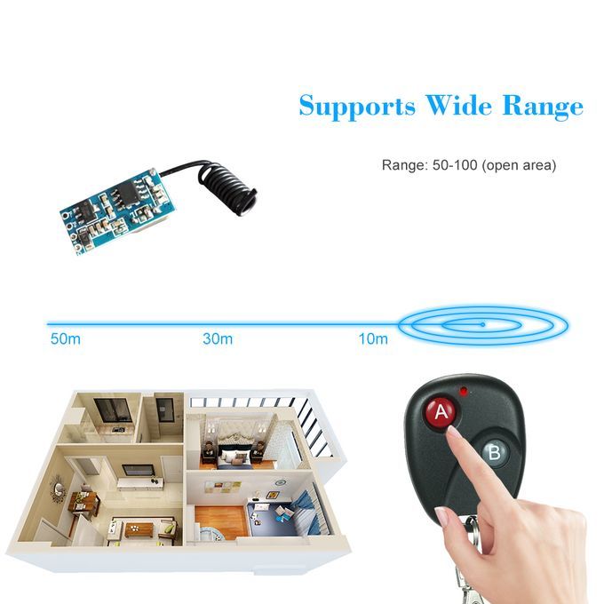 xWidely used in our daily life. It can connect to the access control system, garage door, light, electric curtain, household appliances, motor control, security system, etc.