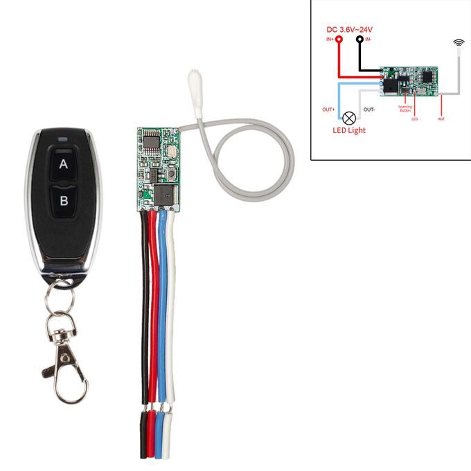 3. Wish you a wonderful on-line shopping!Remote Switch Receiver;433MHz Wireless Remote Control Switch Receiver;Mini RF433MHz Relay 12V Secure 1-Channel Micro;DC 3.6V-24V Smart RF Transmitter 1CH Receiver;Micro Door Access Control System Low Power;One Channel Momentary Mode Transmitter 50Meters