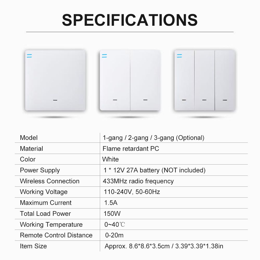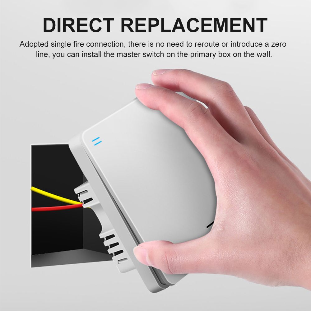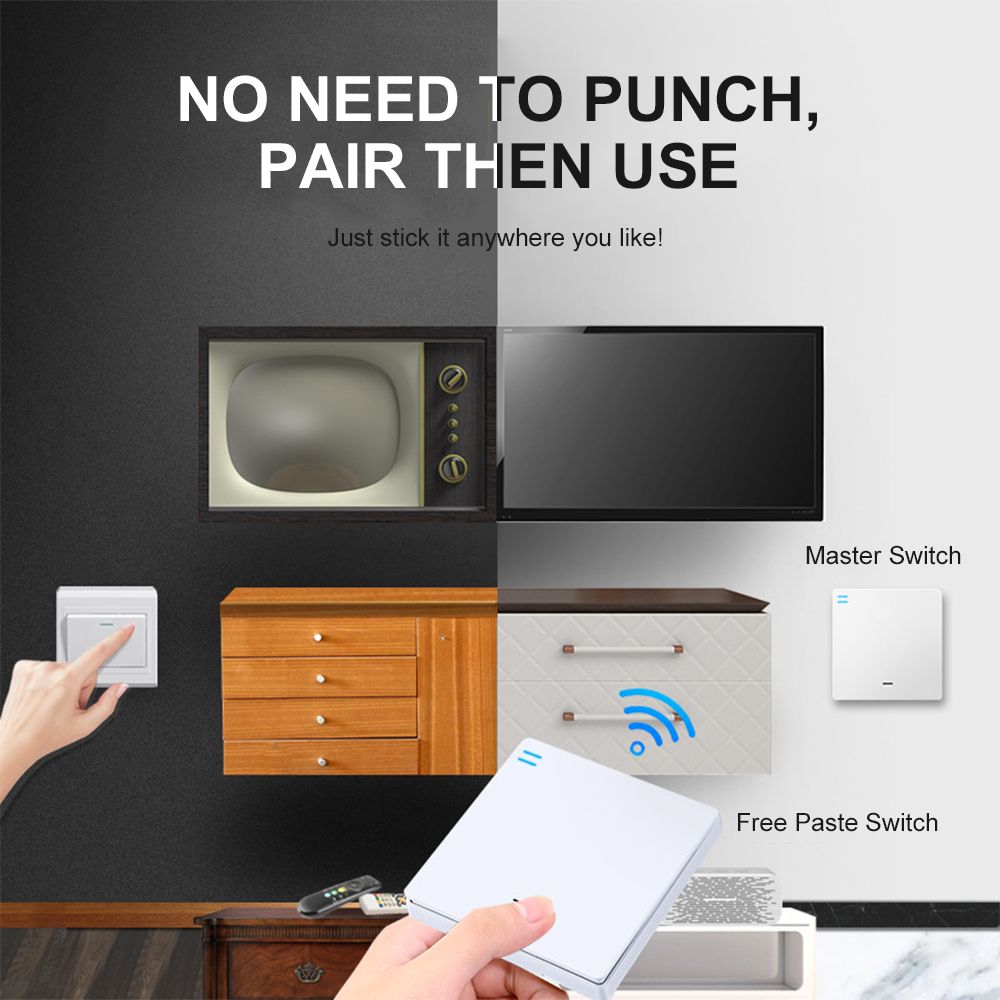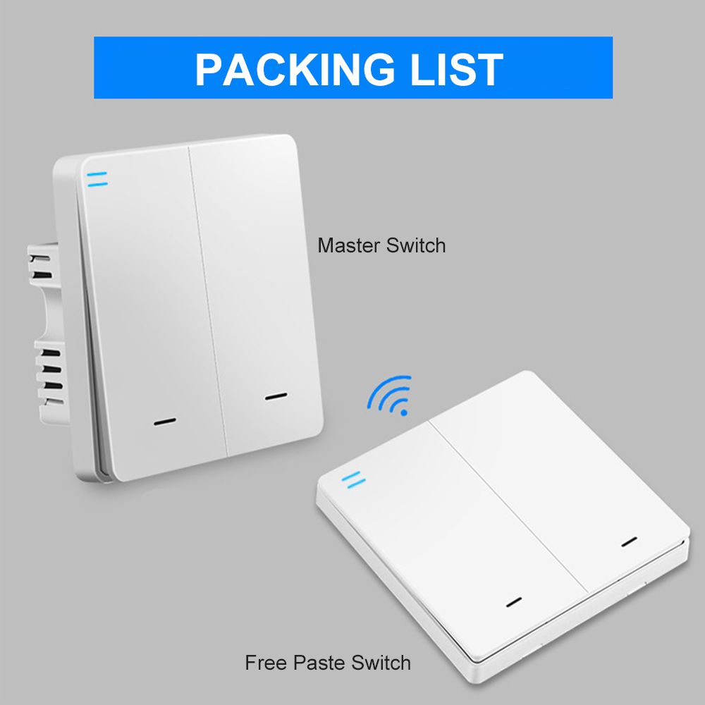 [Installation Mode] Screw fixation + dual adhesive tape fixation. You can install the master switch on the primary box on the wall and with the dual adhesive tape, the free paste switch can be stuck anywhere you like.