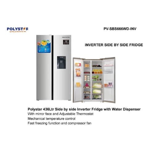 Buy 436L Side By Side Inverter Refrigerator With Water Dispenser - pv-sbs666wd-inv in Nigeria