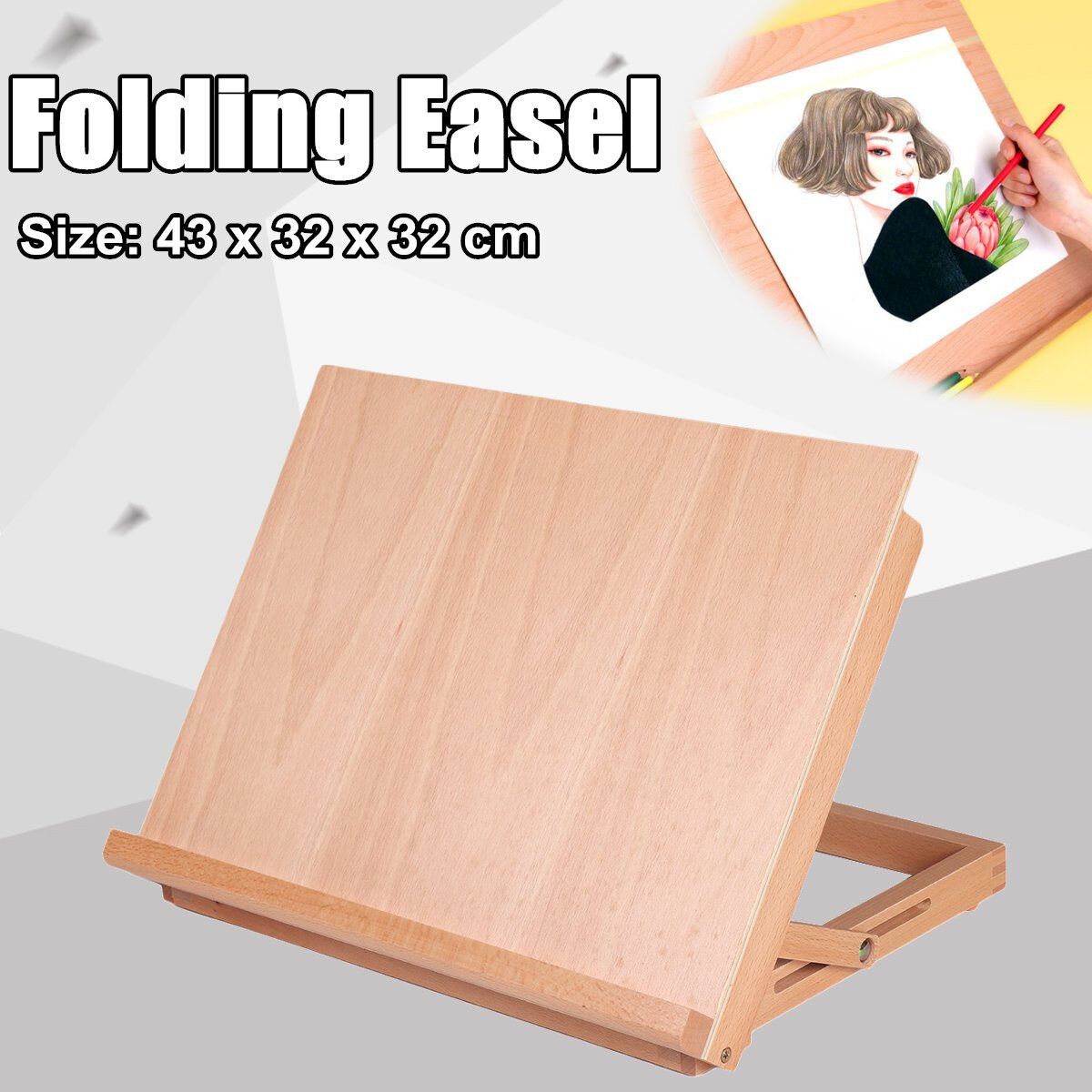 43x32x32cm Folding Wood Easel Portable Drawing Board Art Craft Display Stand Table Adjustable Board