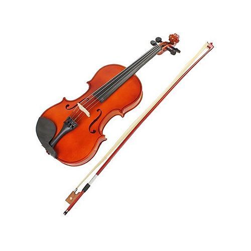 This is an inexpensive way to test the waters and see if fun with the fiddle is in your future. The violin features a solid spruce top, solid maple back and sides, a solid maple neck with oiled finish. The fingerboard and fittings are all ebony. A composite tailpiece with 4 fine tuners and a Stradivarius style chin rest round out the body. It has a maple bridge, a hand-carved fiddle arch and a warm amber finish. It comes with quality bow, a deluxe violin case. Full 4/4 size.
