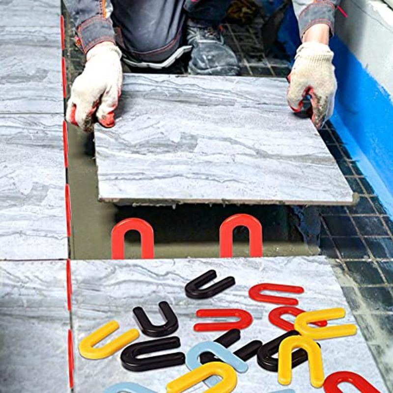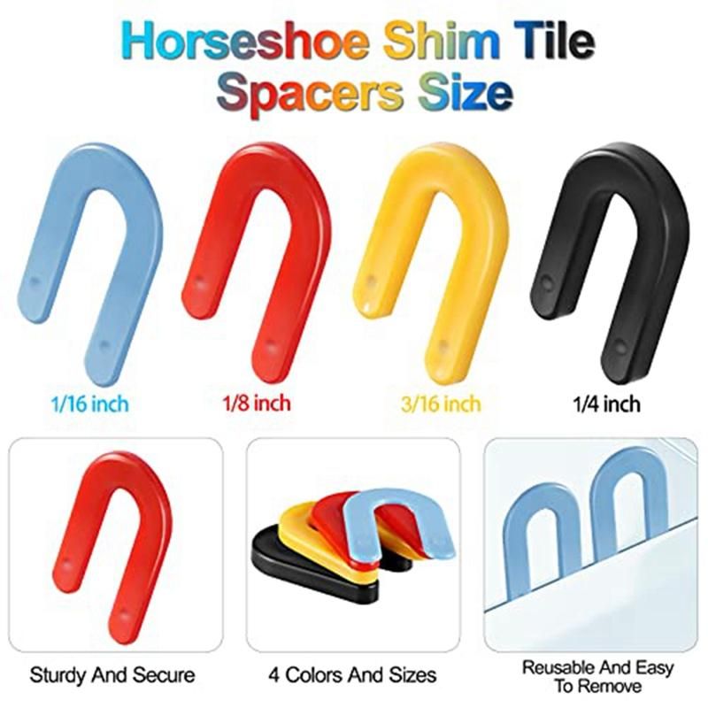 Simple operation: just put the prongs of the horseshoe spacer into the grout joint, alignment and space, perfect for those working in the construction industry, simple and convenient Colour:red+yellow+blue+black