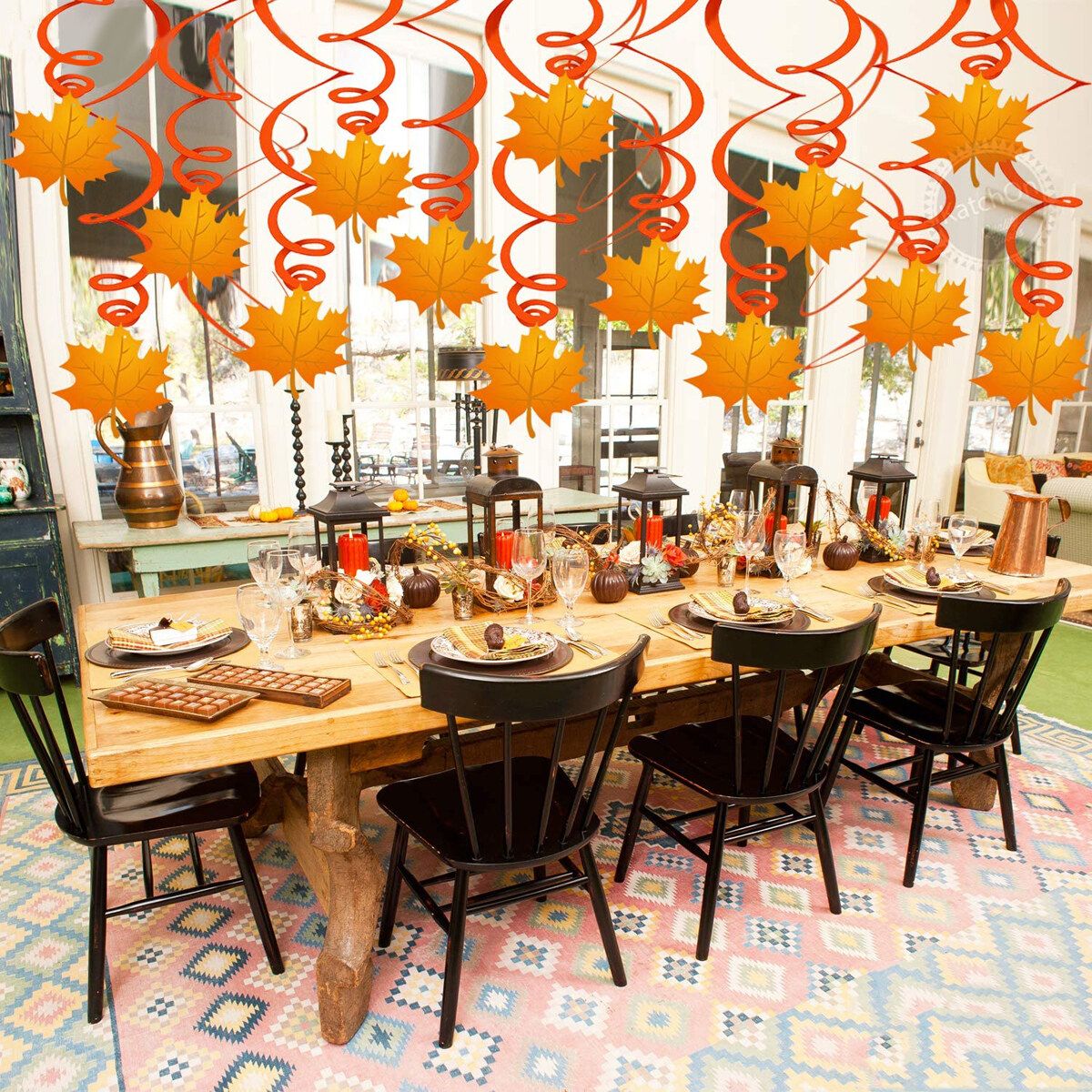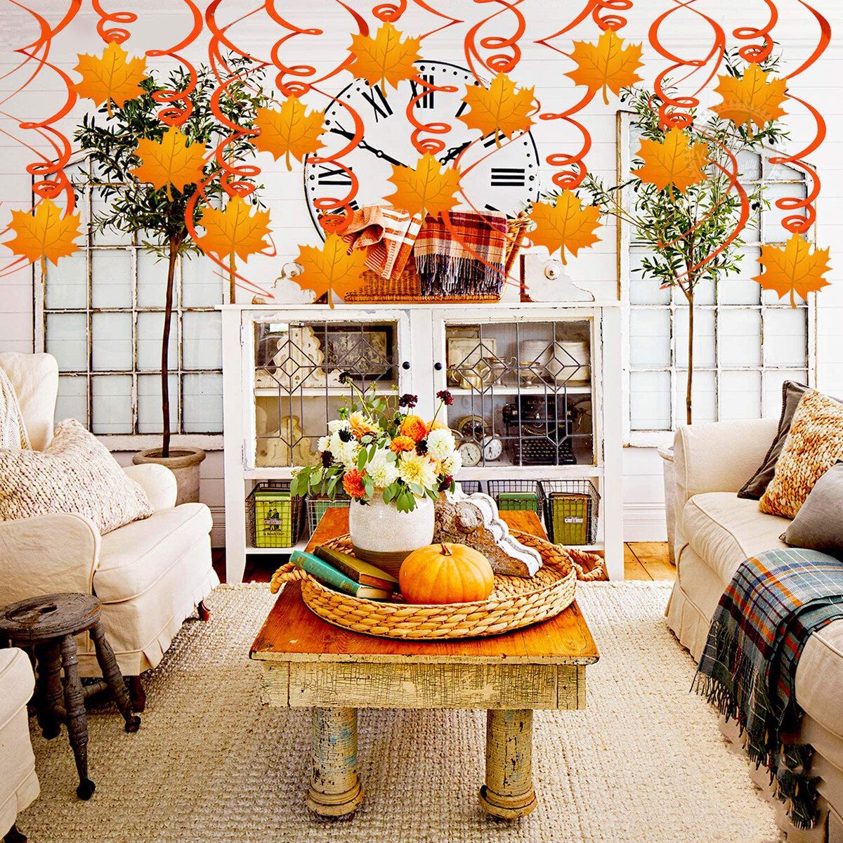 44Pcs Thanksgiving Halloween Hanging Swirls Decoration DIY Ceiling for Home Office Turkey Pumpkin Chicken Maple Leaves Cherry Corn Cutouts Party Decor