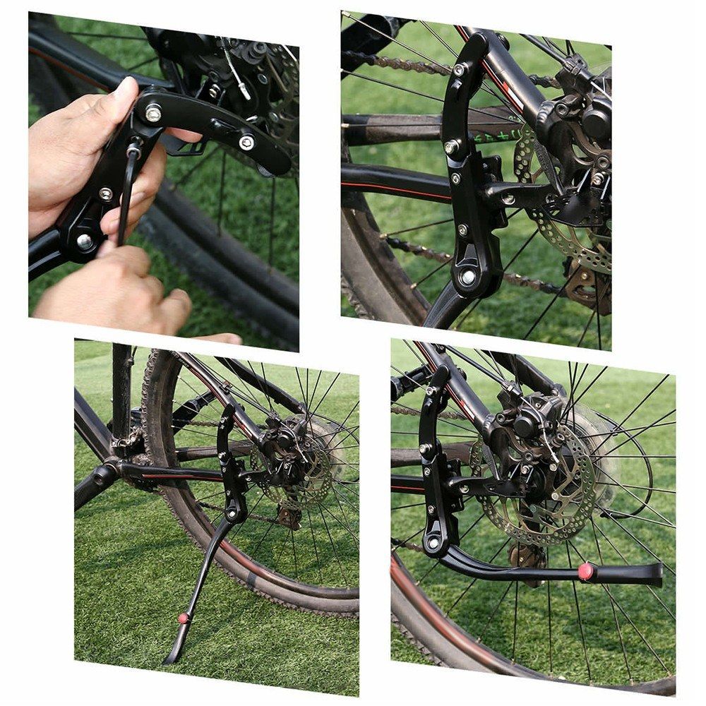 This kickstand is made with sturdy aluminum alloy to provide strong support for your bike. It is adjustable to fit different bikes.