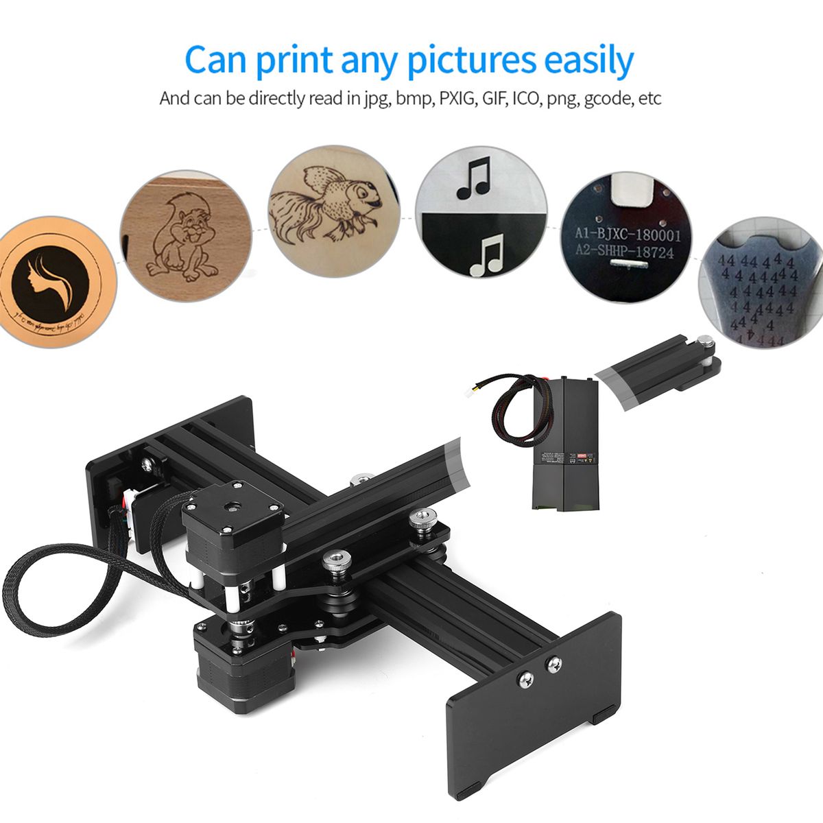 Easy Operation -- Support our professional self-developed software compatible with Win 7 and above which supports a variety of image formats. The machine can print any picture easily and can be directly read in the format of jpg, PXIG, GIF, ICO, png, gcode, etc.