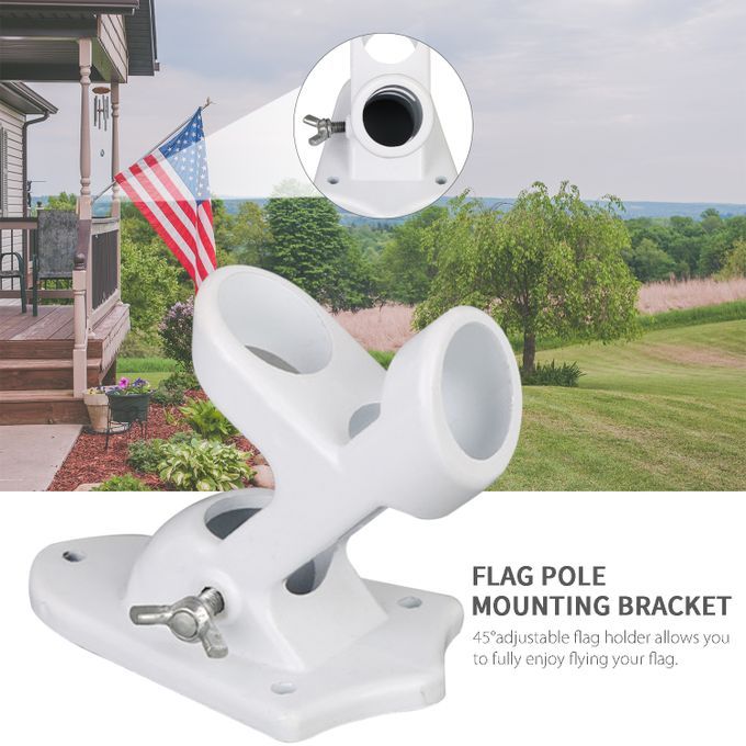 The flag pole mounting bracket constructed by heavy-duty aluminum alloy, sturdy and durable, capable of withstanding strong wind. White coating provides excellent protection against rust. Suitable for both homes and businesses.