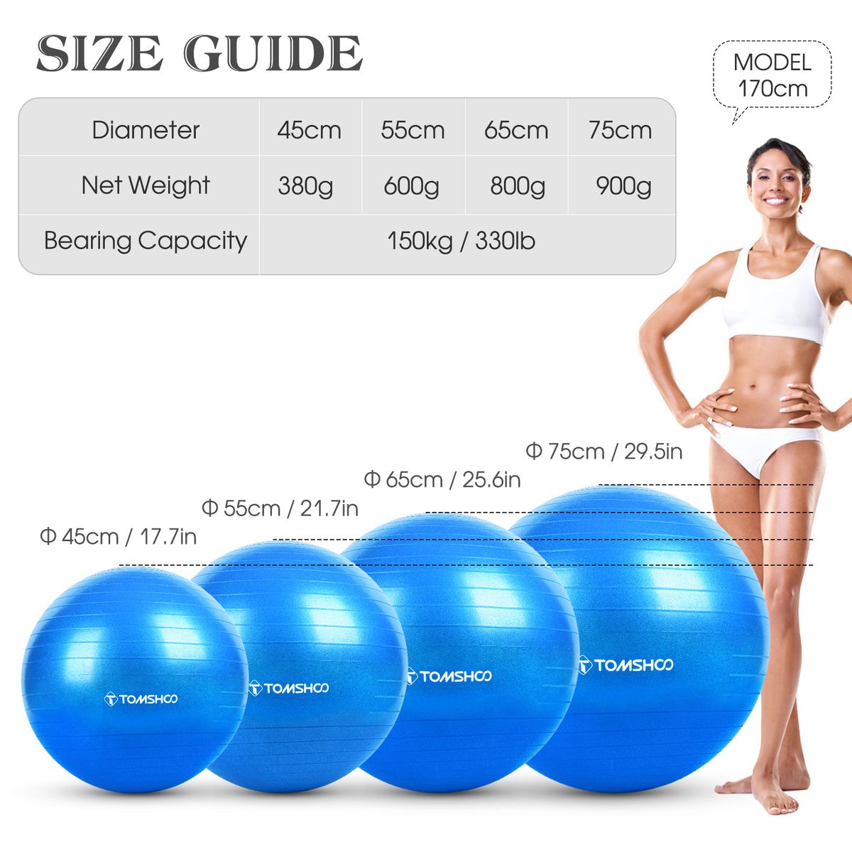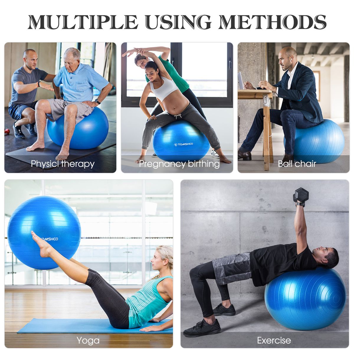 Thickened PVC yoga ball, bearing capacity up to 330lb,convenient for home exercising, gym workouts, yoga, Pilates. And it is also a nice toy for kids. Gifted air pump for easy and quick inflation.