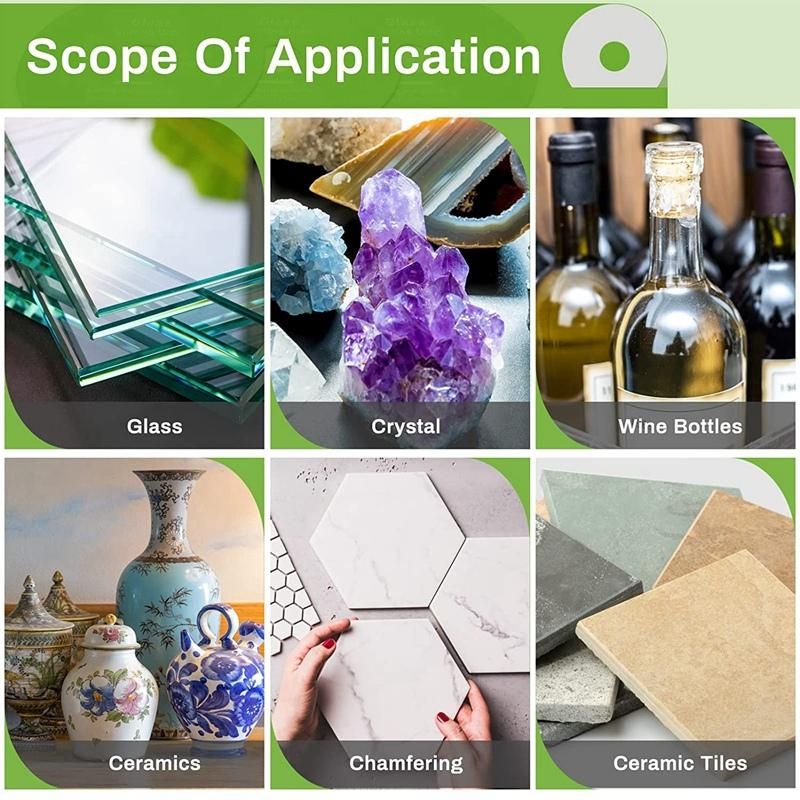 [Scope of application] - Glass cutting diamond plate is applicable to the smooth polishing, cutting or grinding of glass, jade, crystal, wine bottle, ceramics, ceramic tiles, etc. Colour:Green
