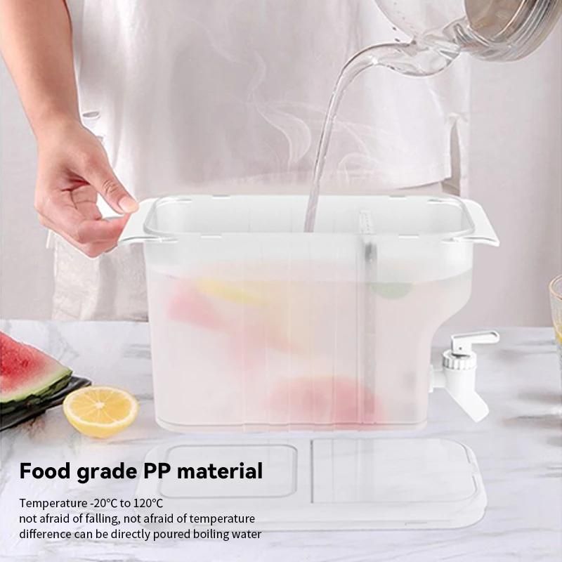 SAFE & EASY-CLEAN MATERIAL: This drink dispenser ismade of food-grade PP material,so you can pour boiling water directly without fear of falling. Easy to clean, large capacity, with a lid on the top, sealed to keep fresh, equipped with a faucet, convenient and practical.