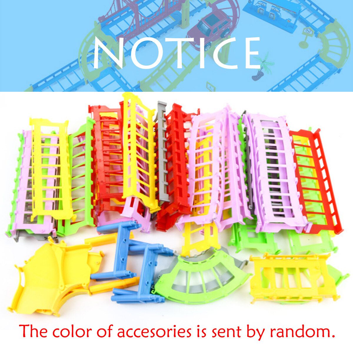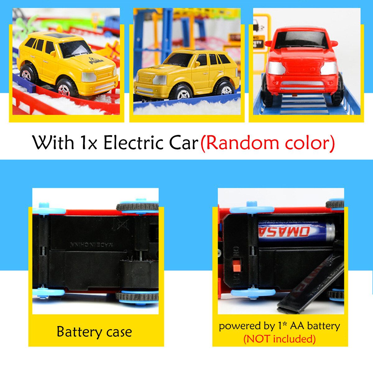 ◆With an electric car toy. Car is powered by 1* AA (NOT included), can drive on tracks.