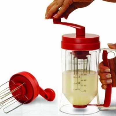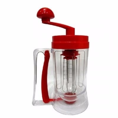 Hand-crank BlenderIt dispenses accurately and consistentlyIt is easy to disable for fast cleaning and storageIt is ideal for waffles, muffins, scones, crepes, cornbread, cupcakes etc without any hassles or mess.Ergonomic handle with push button dispenses perfect amount of batter each timeIt Prepares, mixes, and dispenses ingredients all in the same device.