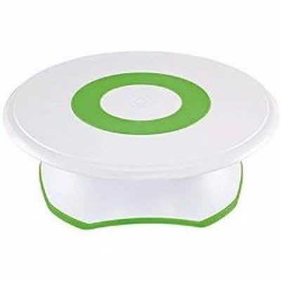 Great for both left-handed and right-handed decorators, the rotating cake stand turns smoothly clockwise and counterclockwise on a hidden ball-bearing track and also easily locks in place when desired for steady lettering and delicate flowers. The non-slip design of the 12-inch platform has a soft-grip ring molded into it to keep your cake in place. The Trim 'n Turn Ultra Cake Turntable makes cake decorating easier in every step of the process, from leveling and torting the cake layers and icing the layered cake to combing the sides of your cake and creating detailed borders along the base and top edges and icing work along the sides.
