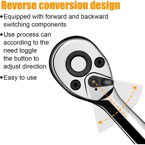 - 【Easily Used and Storage】Equipped with forward and reverse switching elements, during the use of the button can be adjusted according to the need to adjust the direction; 72 tooth rotation, only 5 degrees of rotation, can be operated in a narrow space; The handle head is designed with a quick pull down button, which can be quickly installed and disassembled by pressing the button. TPR + PP handle, comfortable to hold; Its sturdy punch molded toolbox makes the socket easy to store and carry.