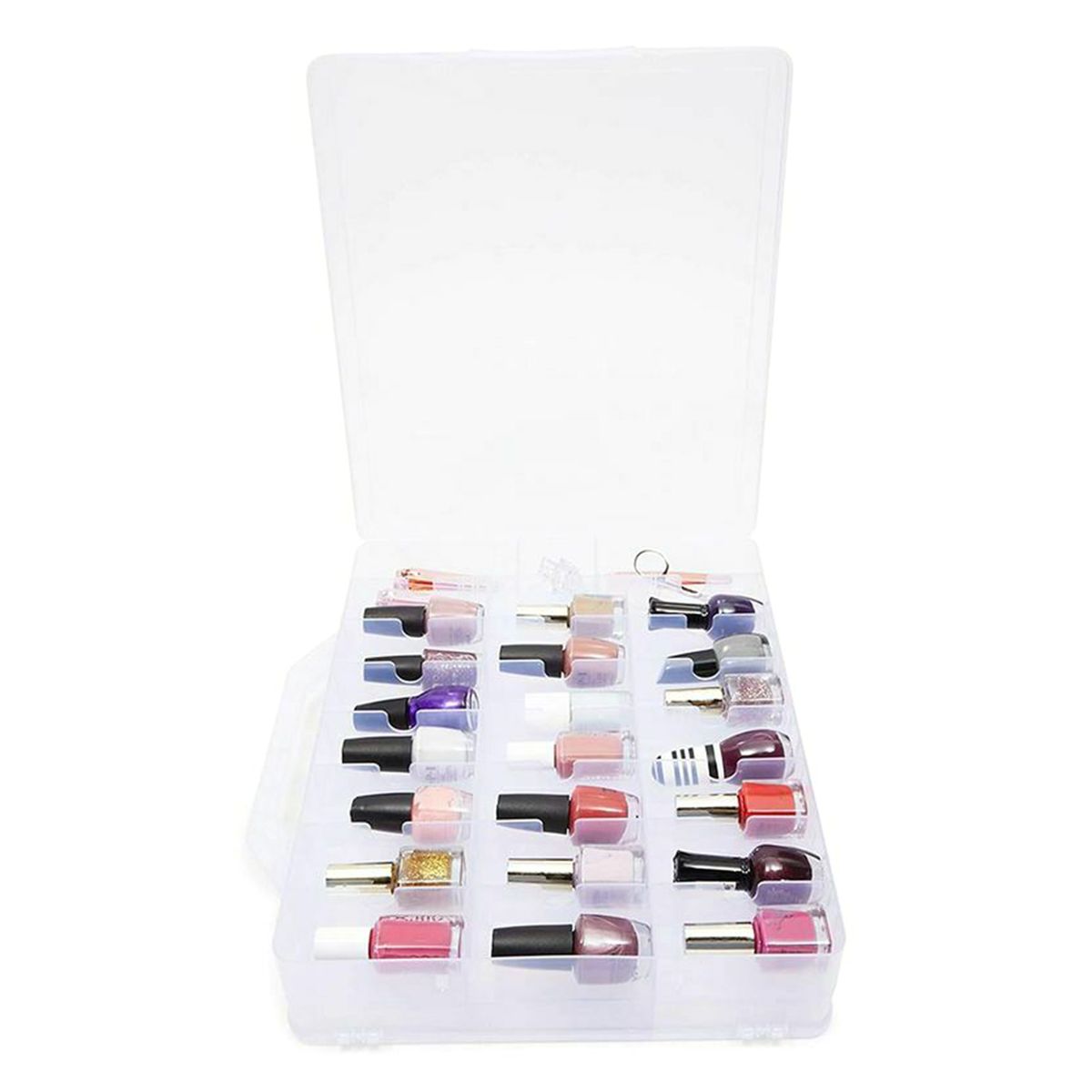 Also can store cotton balls, nail files, cuticle clippers, nail glue remover, ect.