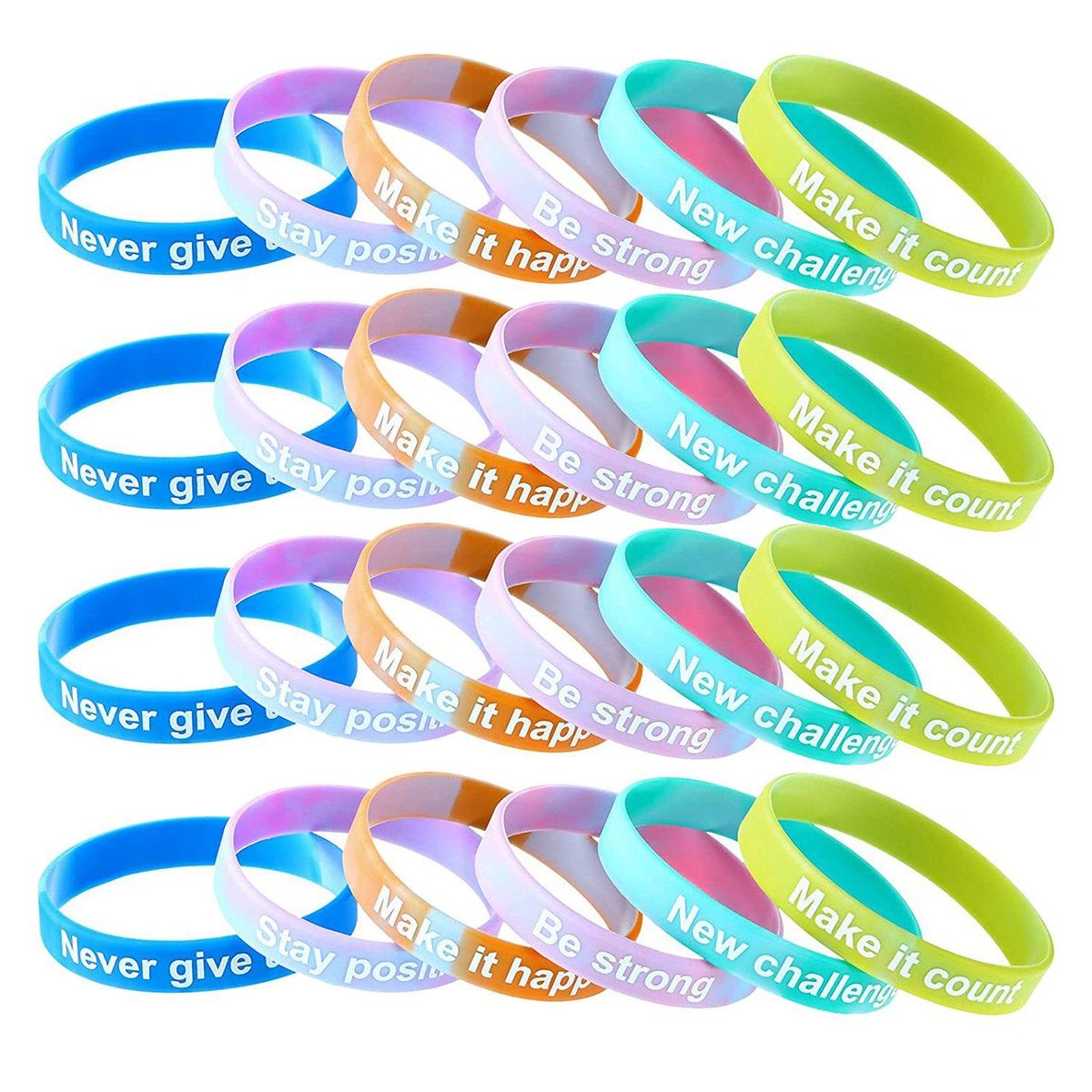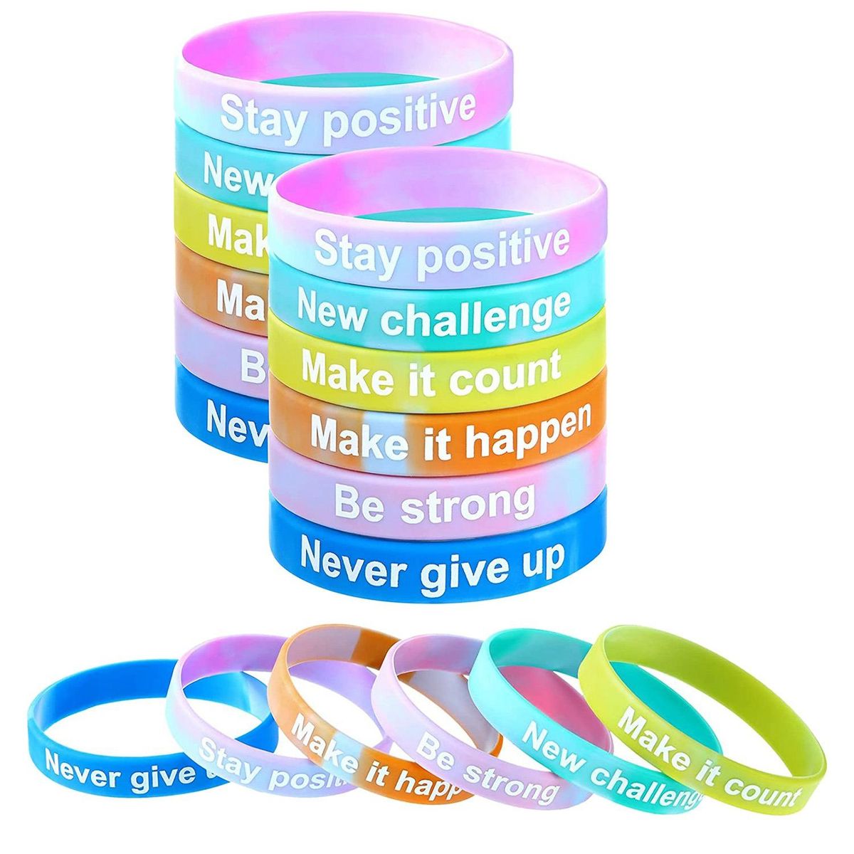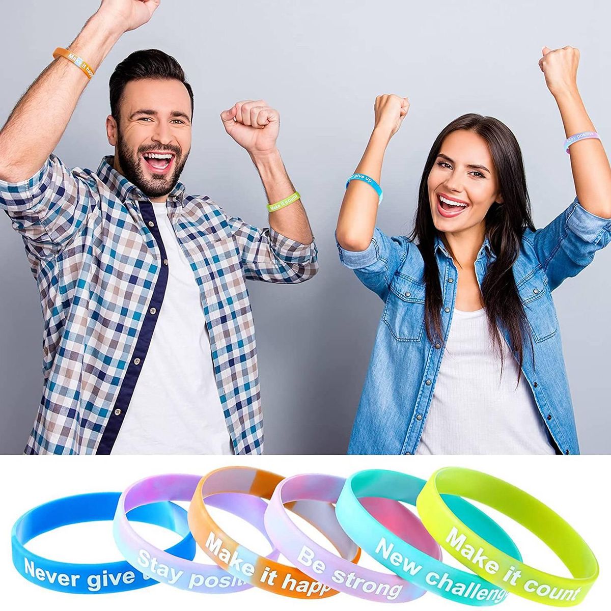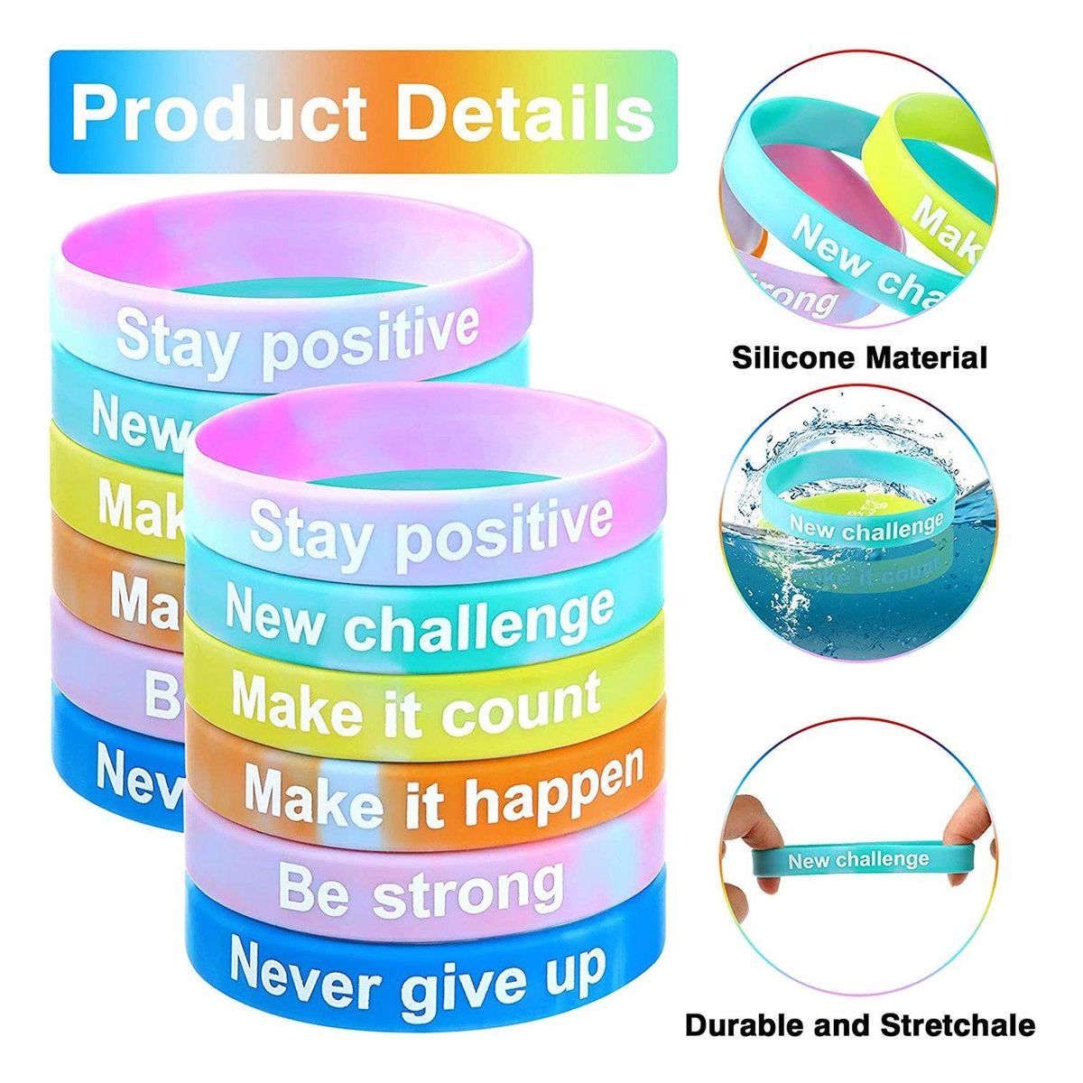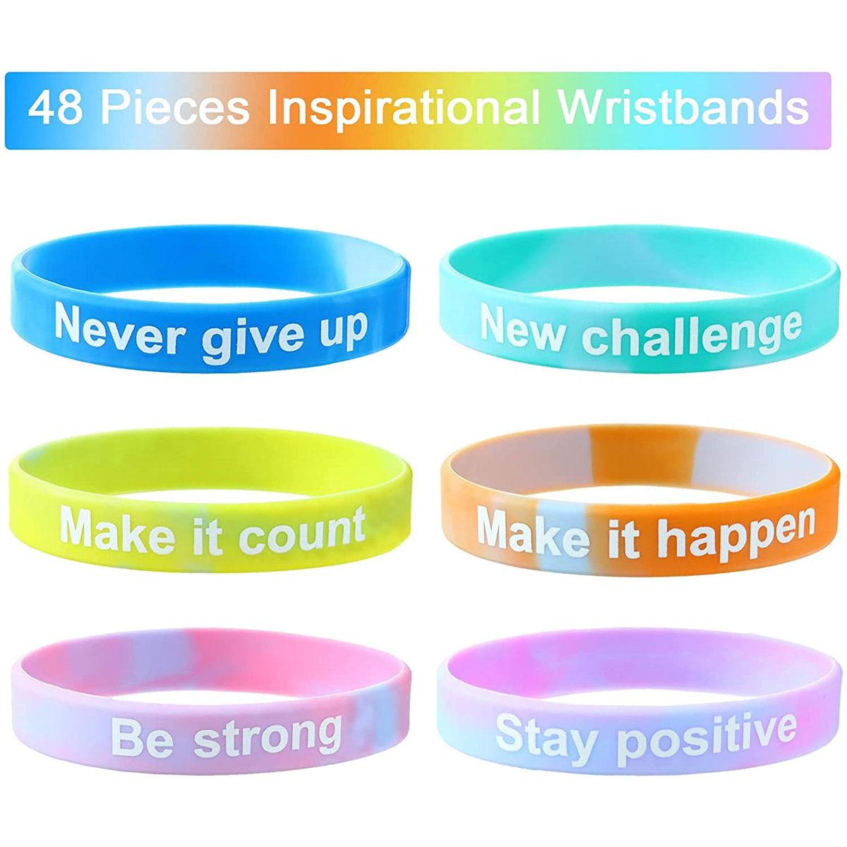 Detailed Information About The Product:PACKAGE CONTENTS: You will get 48 Motivational Band Bracelets in 6 different designs, 8 each; the quantity is enough for every one of your needs, you can easily change styles according to your clothes