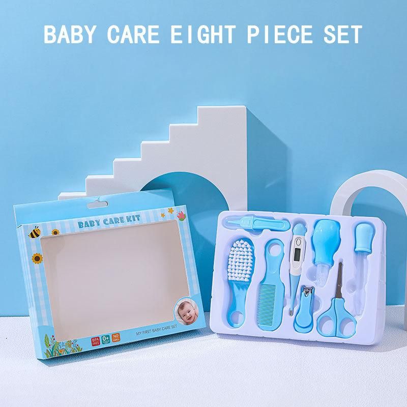 8 pcsA set:1×scissors,1×Baby Brush,1×Baby comb,1×Nail file,1×nail clippers,1× Water temperature gauge, 1×tweezers , 1×Finger cover toothbrush.