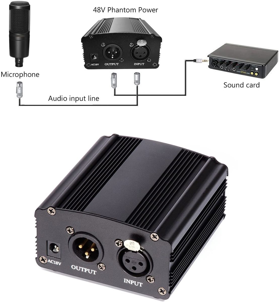 Buy 48V Phantom Power Supply With Adapter And XLR Cable For Condenser Microphones Recording Equipment in Nigeria