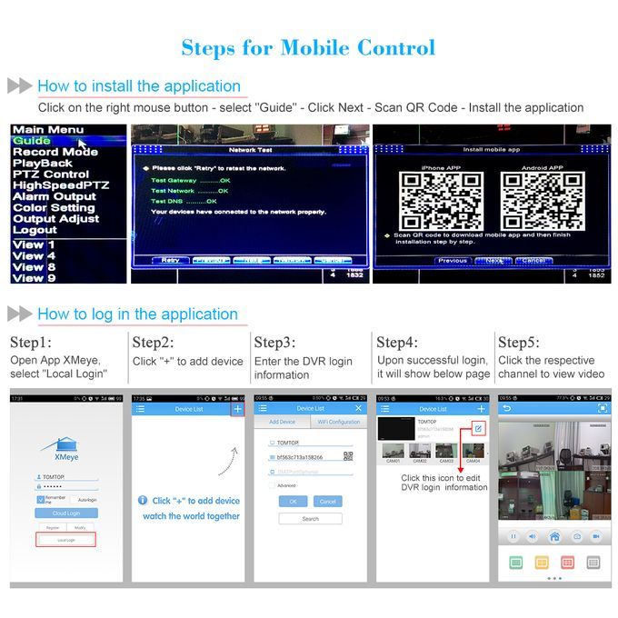 You can view HD footage from your video security system on your web browser using Internet Explorer as well as remote live viewing on iOS and Android devices using the Free XMEYE app.