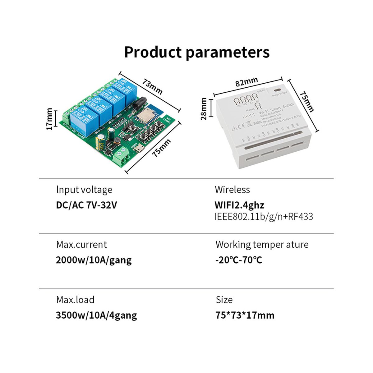 Max.load: 3500w/10A/4gang