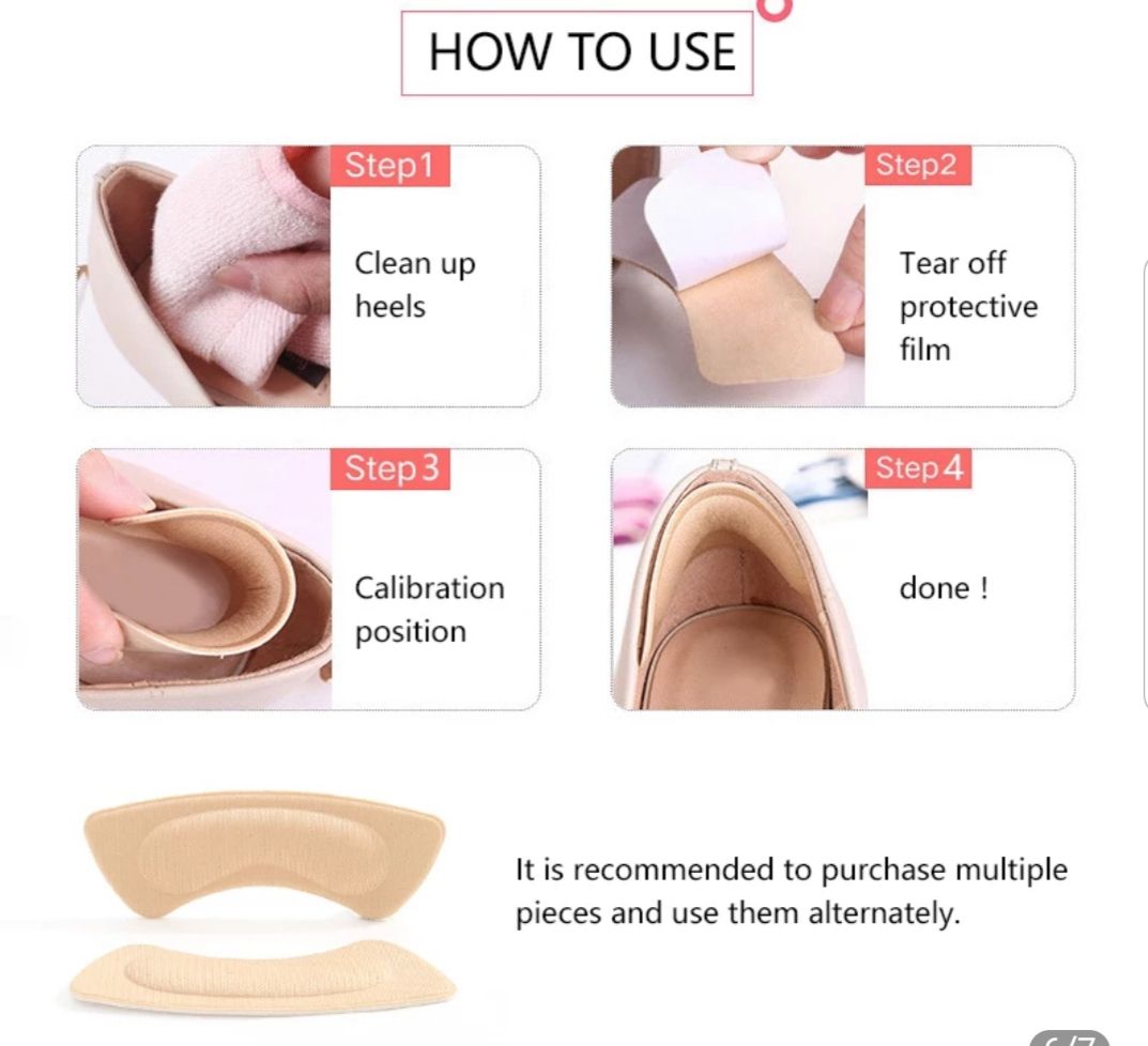 Features:Easy to use, just simply remove the at the back and place the pads on the inside heel of shoe then press firmly.