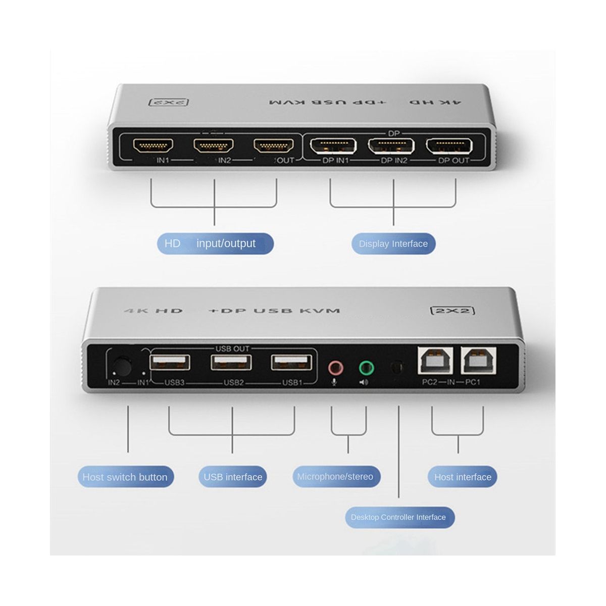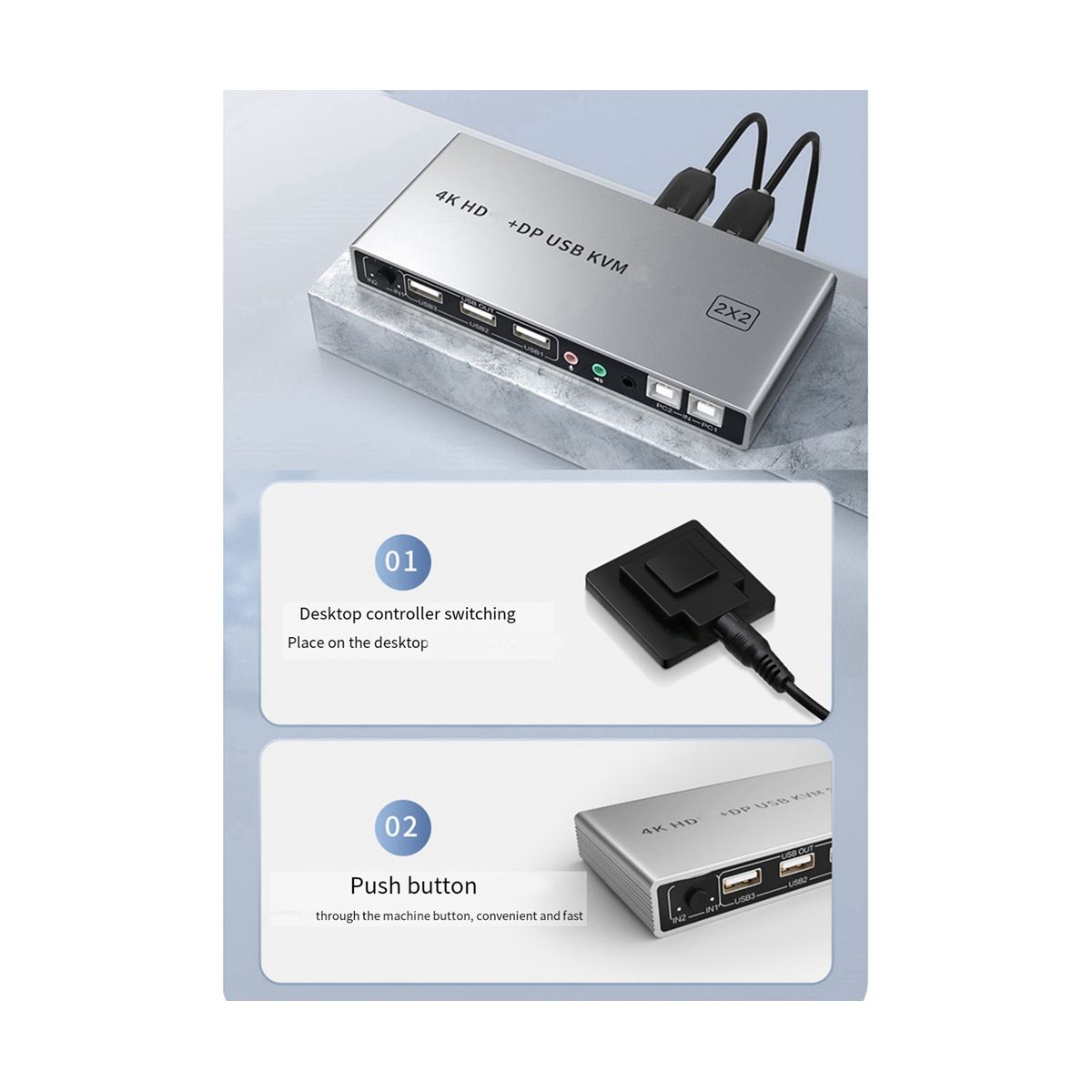 Support 4K 60Hz screen display. Switching mode is convenient and fast, support button and controller switching. With audio, microphone output interface. Support the expansion of usb port, connect multiple usb devices