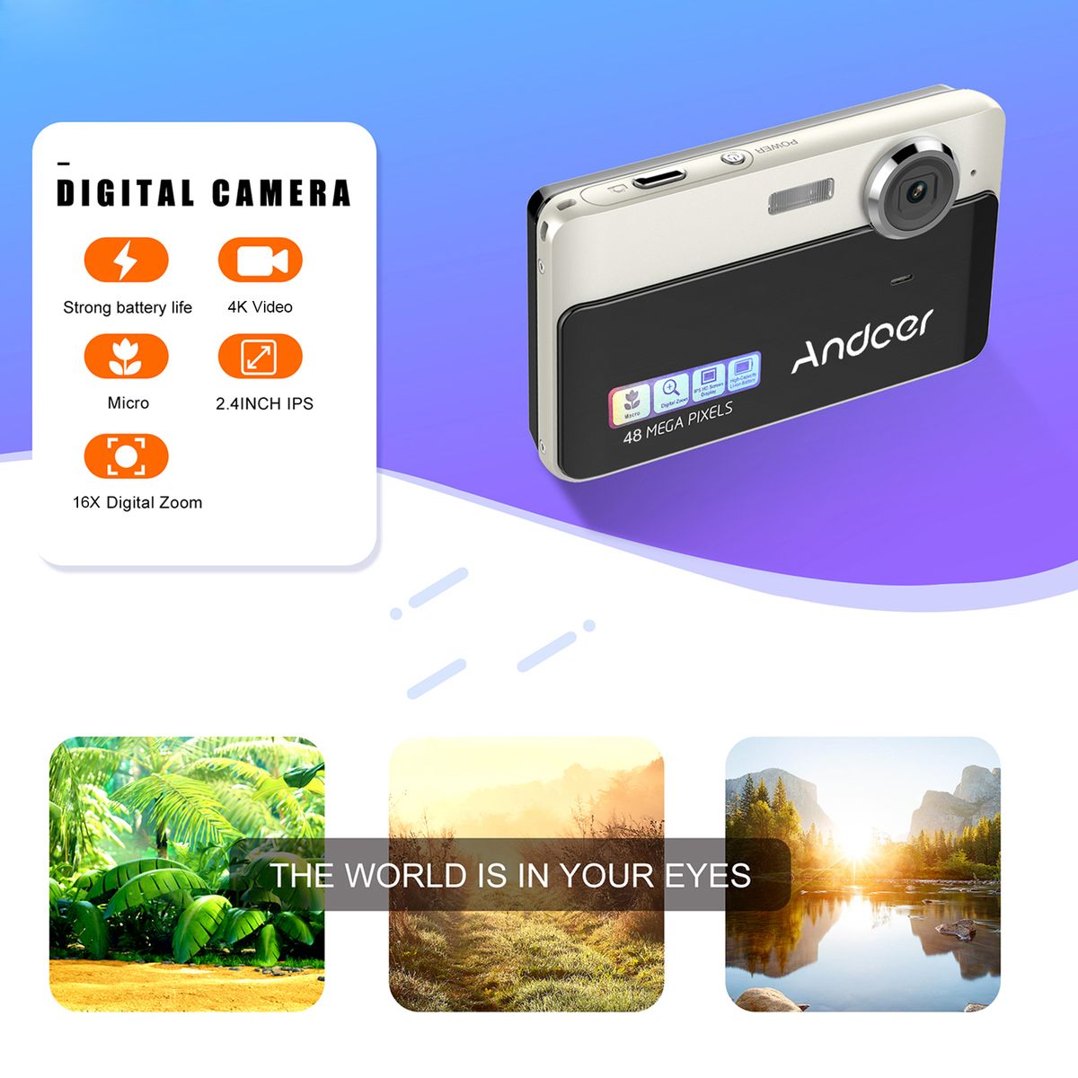 Feature:Compact Digital Camera supports 48 megapixels image resolution and 4K video resolution, with built-in microphone for audio recording.