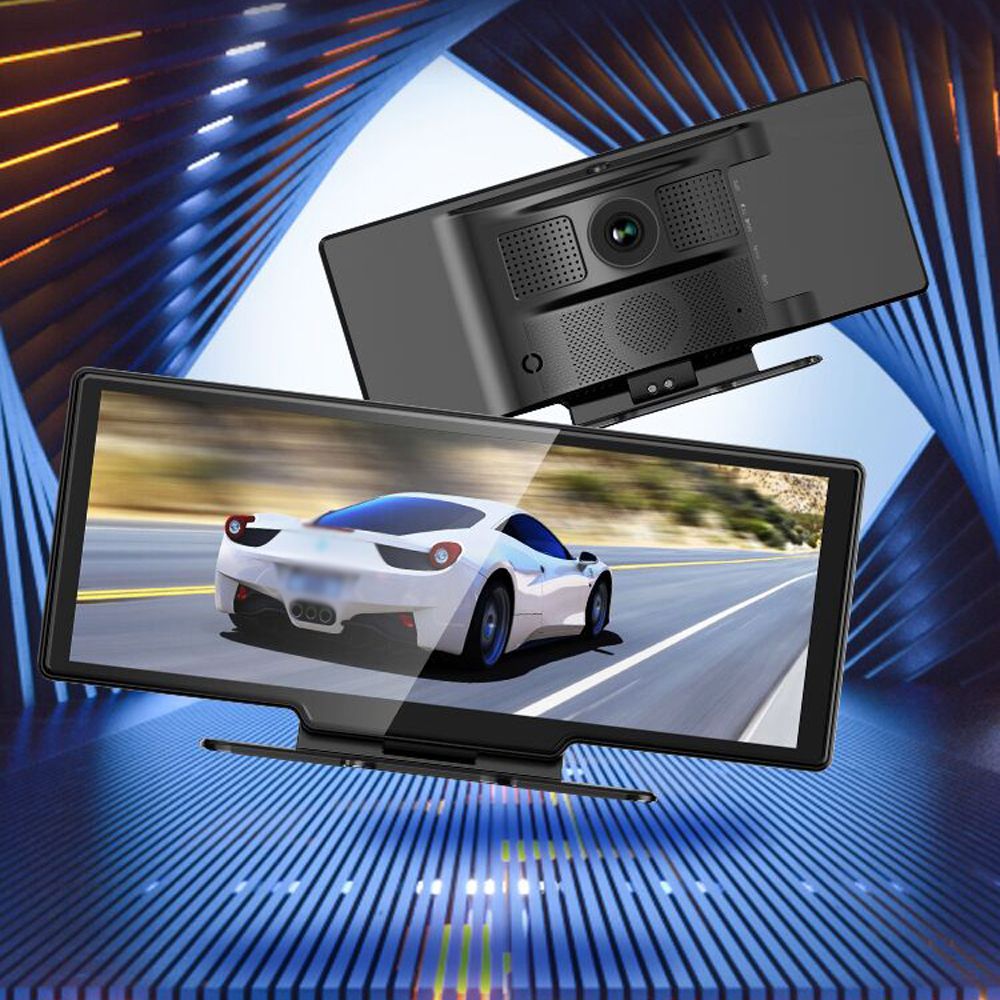 Dual Cameras: High clear car driving recorder, 4K front + 1080P rear dual cameras, 170 deg; wide angle, the 10.26 quot; touchscreen displays real-time images for you, making driving safer.