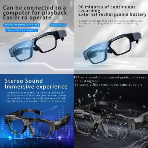 Take your video recording and photography to the next level with this 4K ultra high definition video and Bluetooth sunglass. It's the perfect companion for anyone on the go, whether you're an adventure seeker, a music lover, or just someone who wants to capture life's moments in stunning detail.Not only does it offer a 2048 by 1152 HD resolution for video recording and 4K photography, but it also has a 90-minute continuous recording capacity and can take JPG photos. With this device, you can easily document your travels, events, and everyday experiences without having to carry a separate camera.But that's not all & ndash; this sunglass also has Bluetooth capabilities, allowing you to connect it to your phone for music playback and making and receiving calls. And thanks to its weatherproof design, you can use it in any environment without worrying about damage.Whether you're running, trekking, driving, or cycling, this sunglass will be your trusty companion. And with its discreet design, you can easily record videos and take photos without anyone knowing.But it's not just for fun & ndash; this device also has practical uses. You can use it to record evidence of police harassment or security personnel, or even capture special moments at parties and ceremonies without any hassle. And you can do professional journalism in interviews, content creation and other social media videos & photography, Tiktok, Instagram, X, Facebook, etc. With up to 256GB of SD card memory storage, you'll have plenty of space to store all your videos and photos. And with its high-quality audio and surround sound technology, you'll get crystal clear sound for your music, calls, and video recordings.Don't miss out on this amazing and versatile gadget. Upgrade your video recording and photography game with the 4K ultra high definition video and Bluetooth sunglass. It's the ultimate all-in-one device for modern, on-the-go lifestyles.