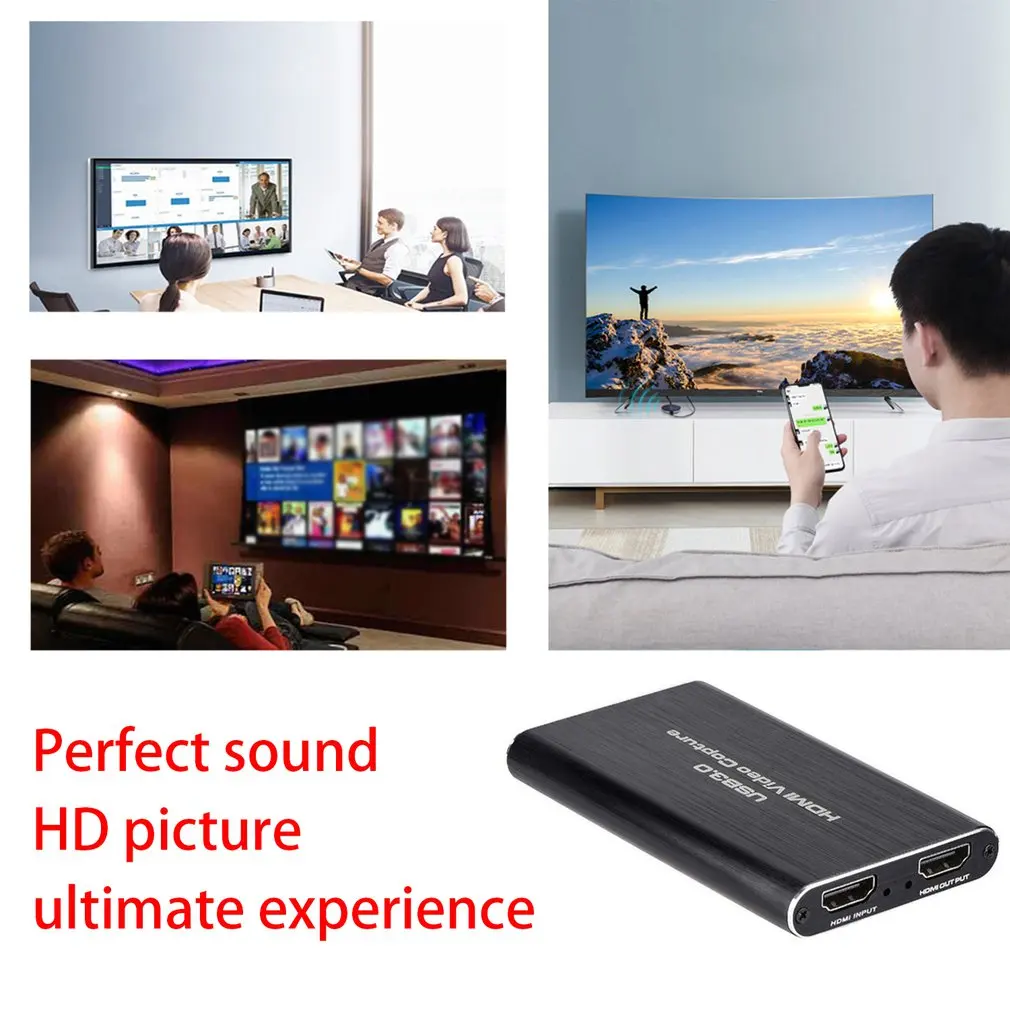 .HDMI Game Capture: -- Based on the high-speed USB 3.0 technology, Stream and record Xbox One, PlayStation, WiiU, Nintendo Switch,NES Classic Edition console gameplay or HDMI enable devices like Blu-ray players.Use 3rd party software like OBS Studio, VLC to capture picture and save file to your computer.Note:Output port only works with HDTV,can't work with monitor or projector..Live Streaming: -- Live RTMP streaming to Twitch, YouTube, DailyMotion, Hitbox and more.Compatible with OBS Studio (windows,OS X); Windows Media Encoder (Windows); Adobe Flash Media Live -Encoder (Windows, OS X); Real Producer Plus (Windows); VLC (Windows, OS X, Linux); QuickTime Broadcaster (OS X); QuickTime Player (OS X); Wirecast (Windows,OS X); vMix(Windows); Potplayer(Windows)and etc..Screen Share for Online Meeting: -- A fast, familiar, and affordable way to share content in the conference room or online meeting..Video and Audio: -- Support input video resolutions up to 1080p at 60 fps.CONVERTS INPUT AUDIO FORMATS TO 48 KHz 2ch 16bit PCM. Supports USB video class (UVC), USB audio class (UAC) protocol.With Microphone input allows you to record your live voice..System Requirements:-- Compatible with Windows 7,8.x,10, Mac OS X 10.9 or above, and Linux kernel 2.6.38 or above.Beware:Please read product description about & ldquo;Hardware requirements & rdquo;