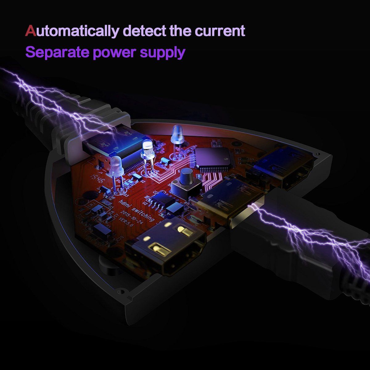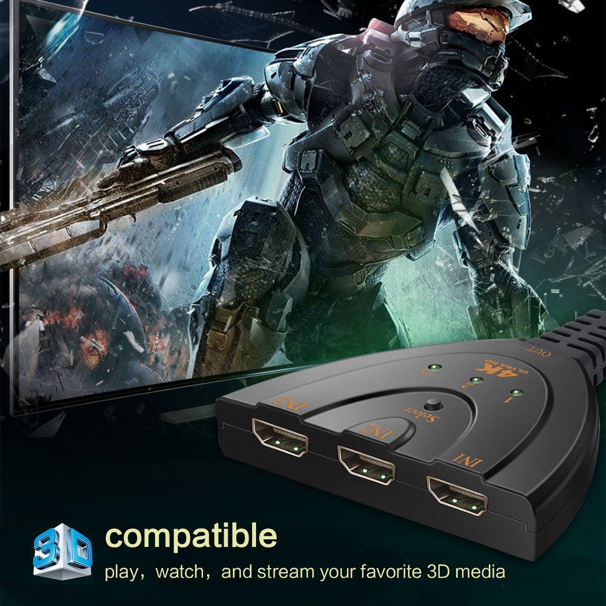 Hdmi switch 4k:3 HDMI ports in and 1 HDMI out for various HDMI devices,has the key-press-switching function.