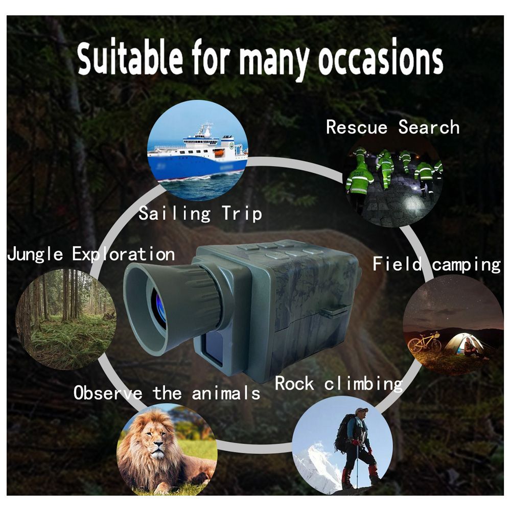 This portable night-vision device can be used to observe objects in the dark and low light situation, suitable for outdoor use. Two lighting modes are available to use. The viewing distance in the low light environment will be 3.0 meters to infinite, and 150-200 meters viewing distance in the total dark environment. Suitable for outdoor activities such as boating and yachting watching, huntings, birds watching, travel, hiking, camping, animal watching. Also perfect for sports games, concerts, opera, etc.