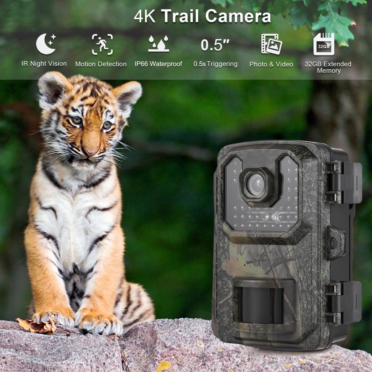 Buy 4K Trail Camera 16MP Wildlife Scouting Camera Tracking Camera with 2.0 Inch TFT Color Screen 0.5s Trigger Time Supports Infrared Night Vision Motion Activated IP66 Waterproof in Nigeria