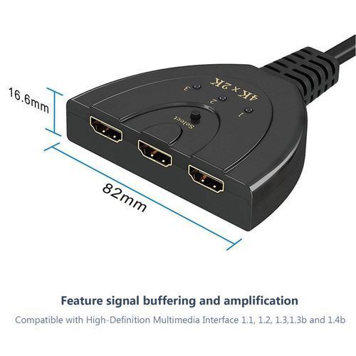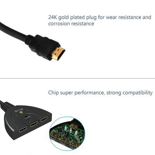 Features:3 input ports and 1 output port in the switcher, compact-designed and portable, it can connect a desktop computer, laptop, or other devices to a monitor, projector, HDTV, or other devices with High-Definition Multimedia Interface. Tuck this lightweight switcher into your bag or pocket to do a business presentation with your laptop and projector, convenient.