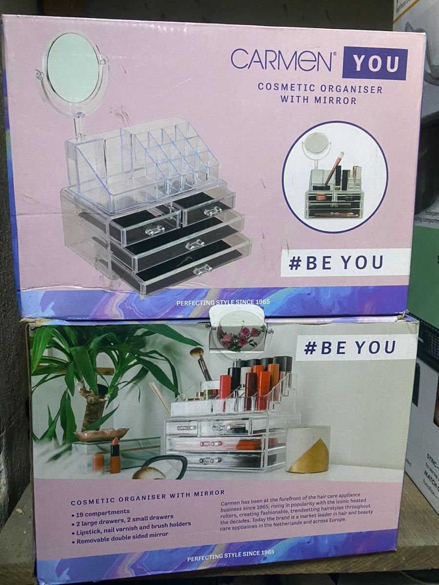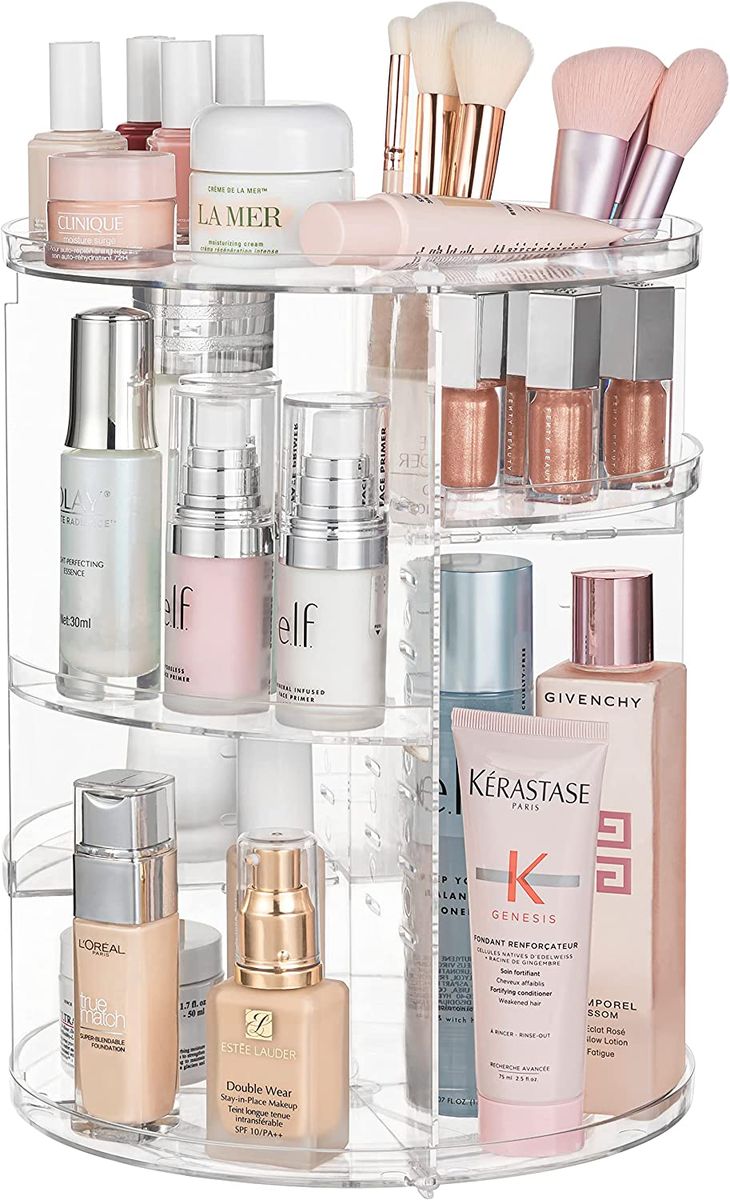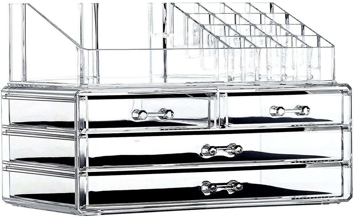 Keep your makeup, lipstick, gloss, foundation, lotions and creams in easy to see view with the separate storage on top.