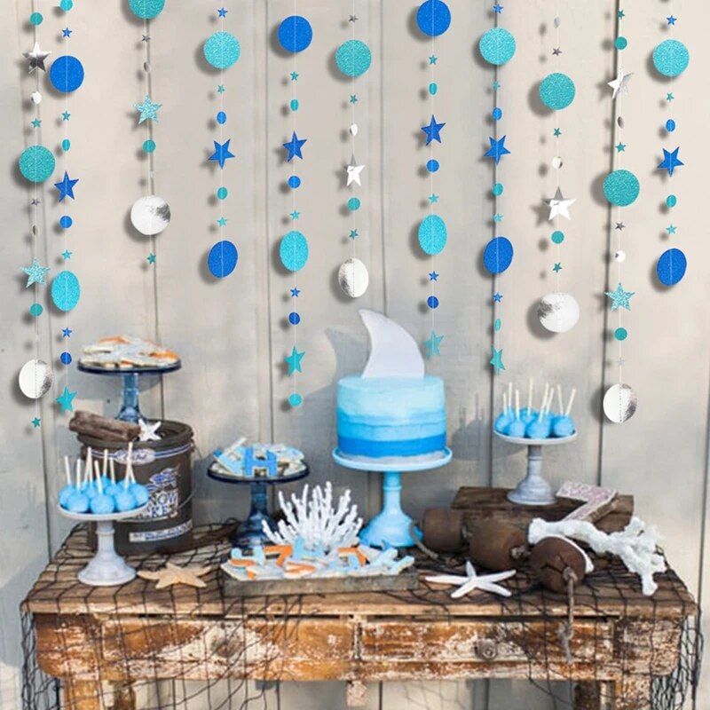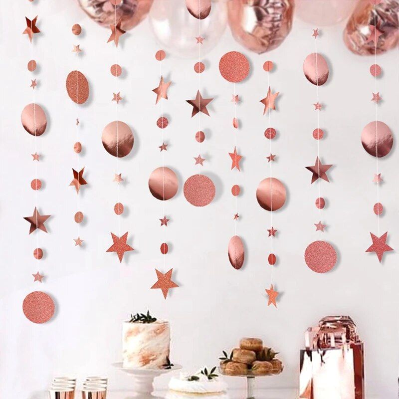 1*4m Mirror Paper Star Round Gold Garland Flash Bann