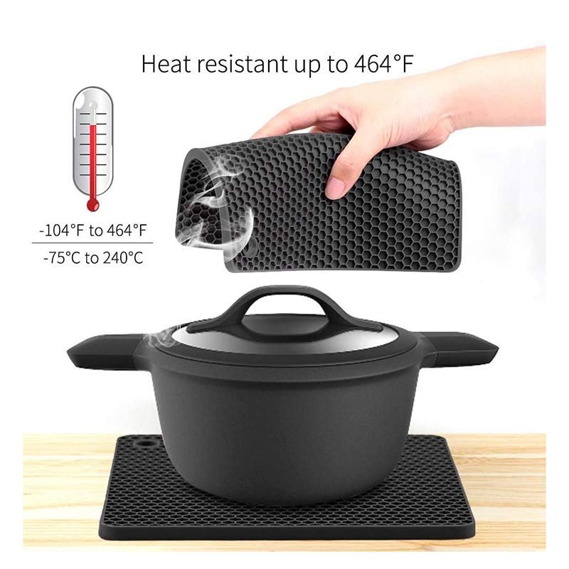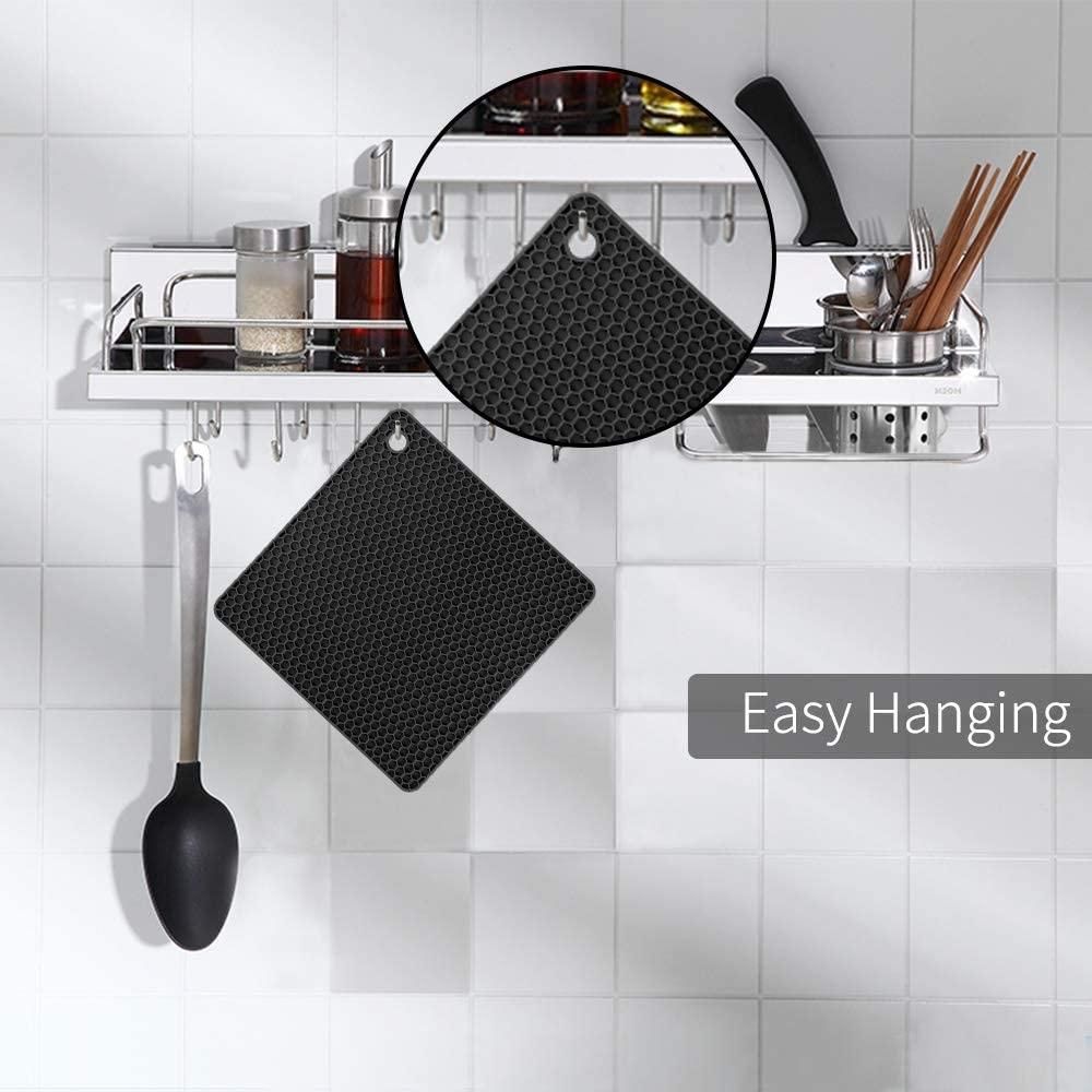 Easy to Clean: Special honeycomb texture offers a firm grip and captures over-spills. The premium food-grade silicone trivets are easily rinsed off, you're able to hand wash, rinse or even throw them in the dishwasher and they come out looking The product is new again.