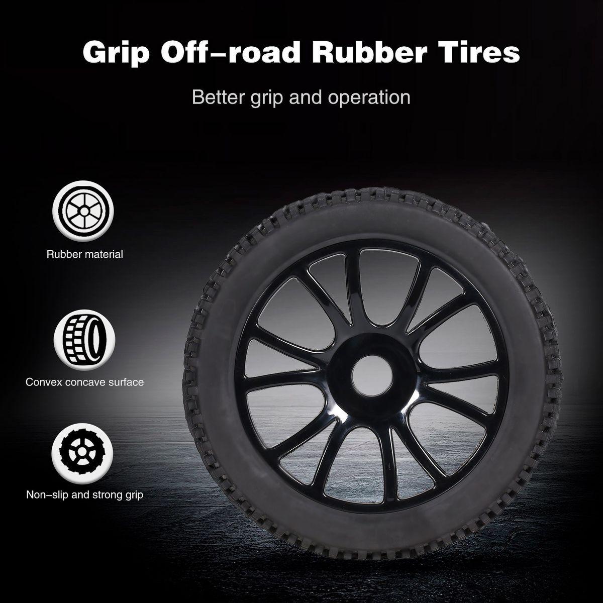 The wheel is made of rubber, plastic and foam and it is durable. It is suitable for 1: 8 race car / rv / flat car, RC Car Himoto HSP Redcat Traxxas Tamiya HPI.