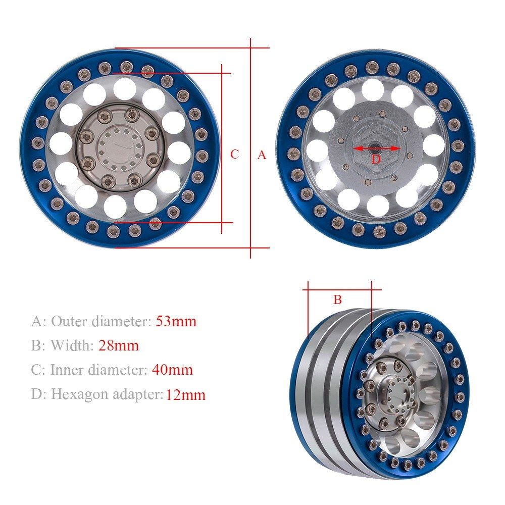 This high quality 53mm wheel rim is specially designed and manufactured for Traxxas HSP Redcat RC4WD Tamiya Axial SCX10 D90 HPI RC Rock Crawler, with fine craftsmanship, outstanding appearance and high performance, it is perfect for your RC car.
