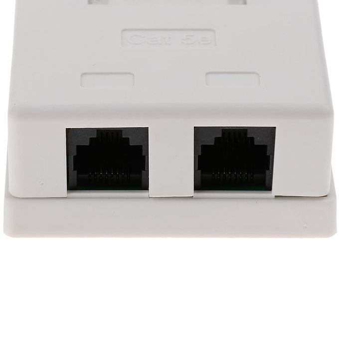 All-in-one cat5e outlet box with 2x cat5e RJ45 sockets on a PCB board to IDC termination blocks.