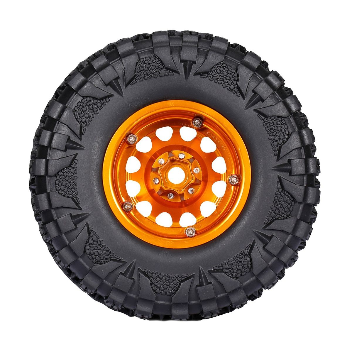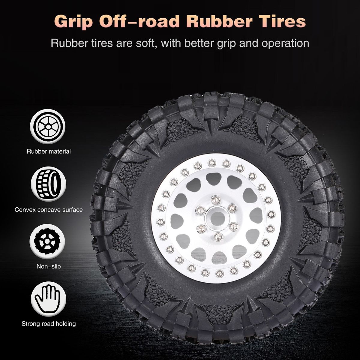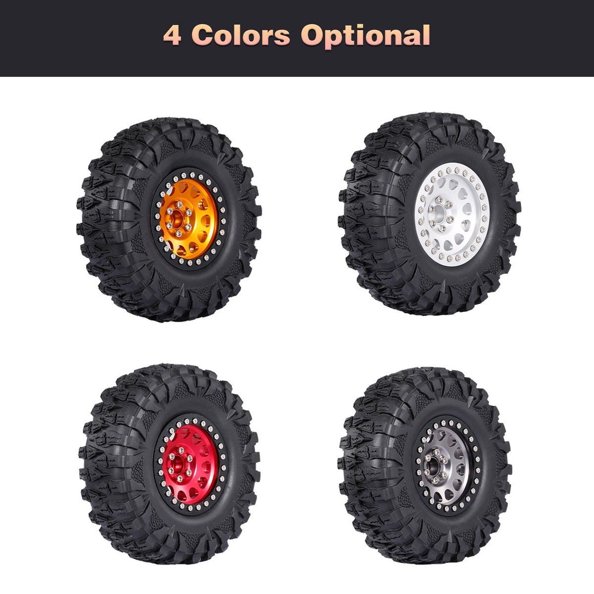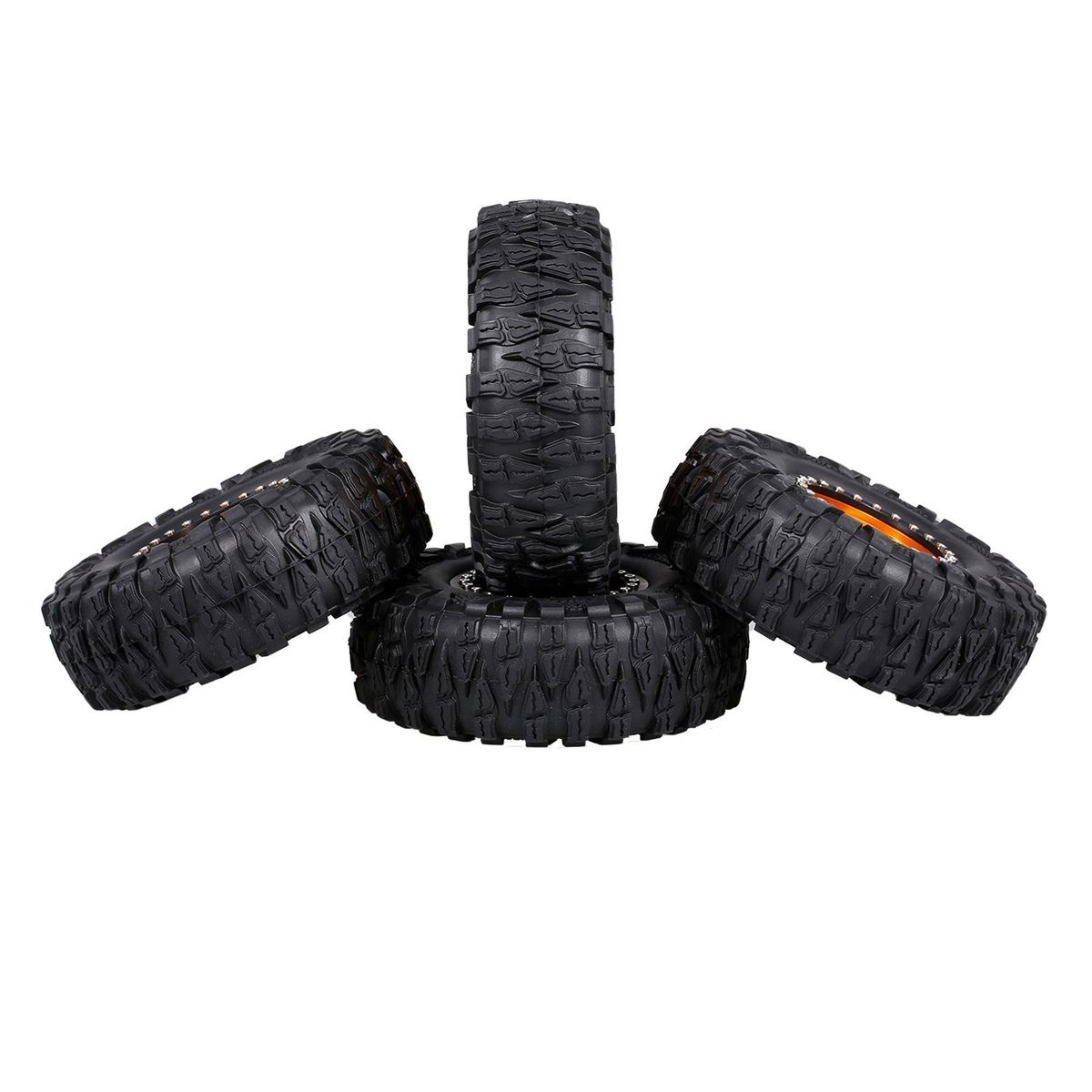 The packages include 4pcs tires, the tires are suitable for 1/10 rc Rock Crawler Traxxas Trx4 TRX-6 Axial Scx10 90046. Full strong metal wheels rims hub can give good support for the tire.