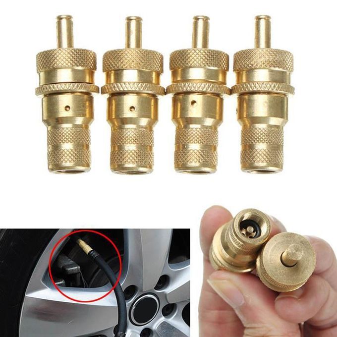 4Pcs 4WD Brass Automatic Tire Deflators Valve 6-30 PSI Adjustable Bleeder Set Copper Color
